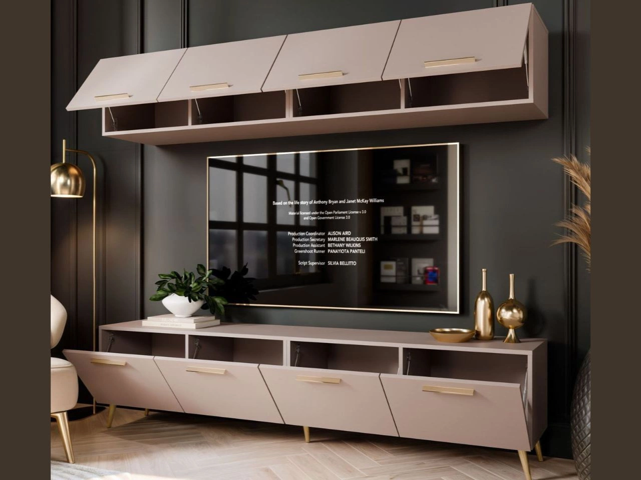 Meblościanka do salonu z oświetleniem LED na złotych nogach Noaé Kaszmir