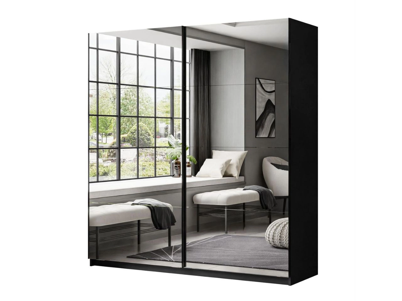 Szafa dwudrzwiowa z drzwiami przesuwnymi i lustrami 194 cm Nuveo Czarny połysk