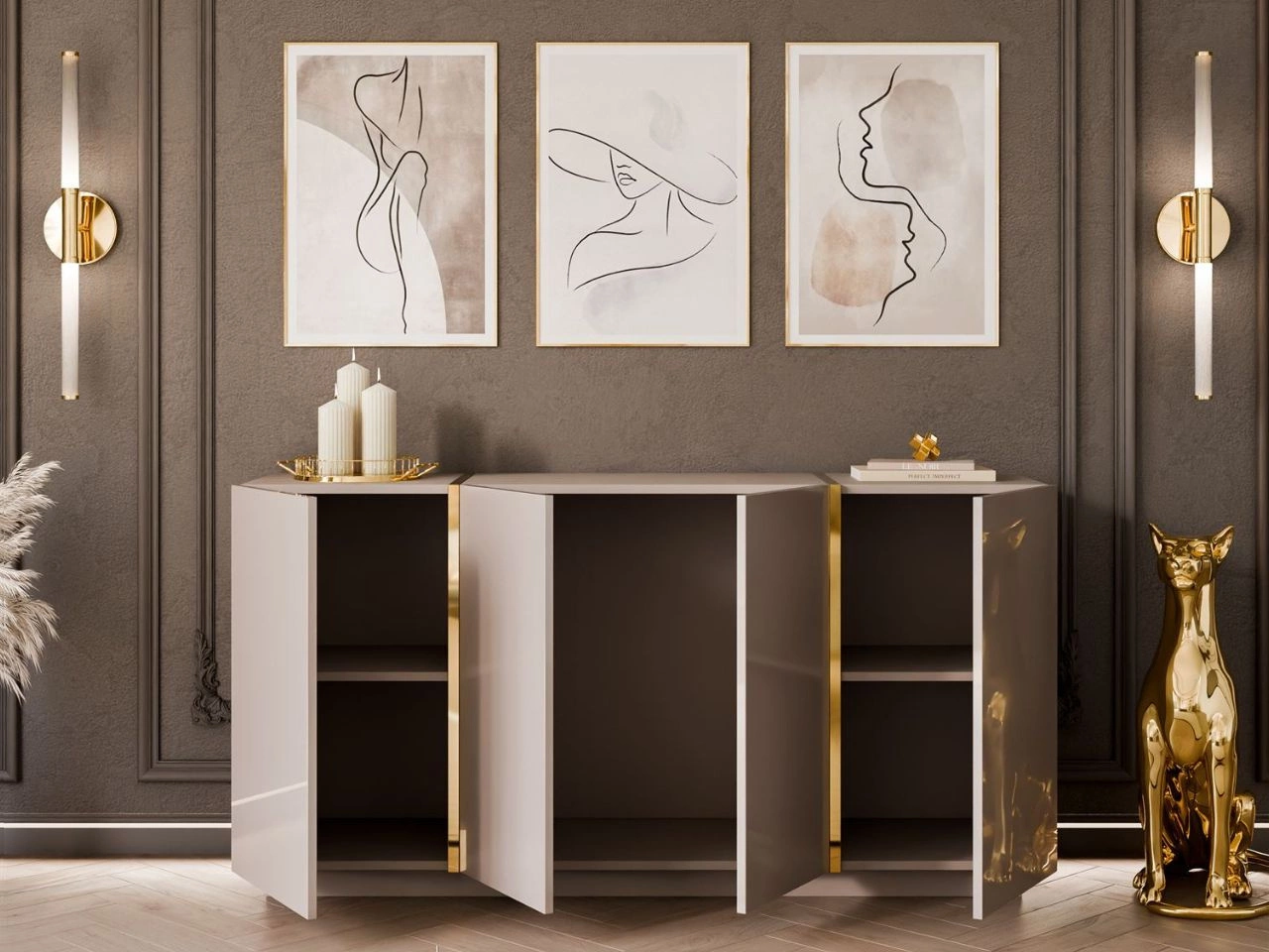 Czterodrzwiowa komoda 158 cm w stylu glamour Lunelie kaszmir połysk