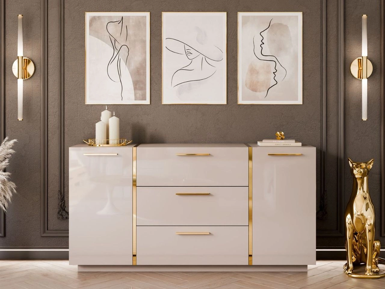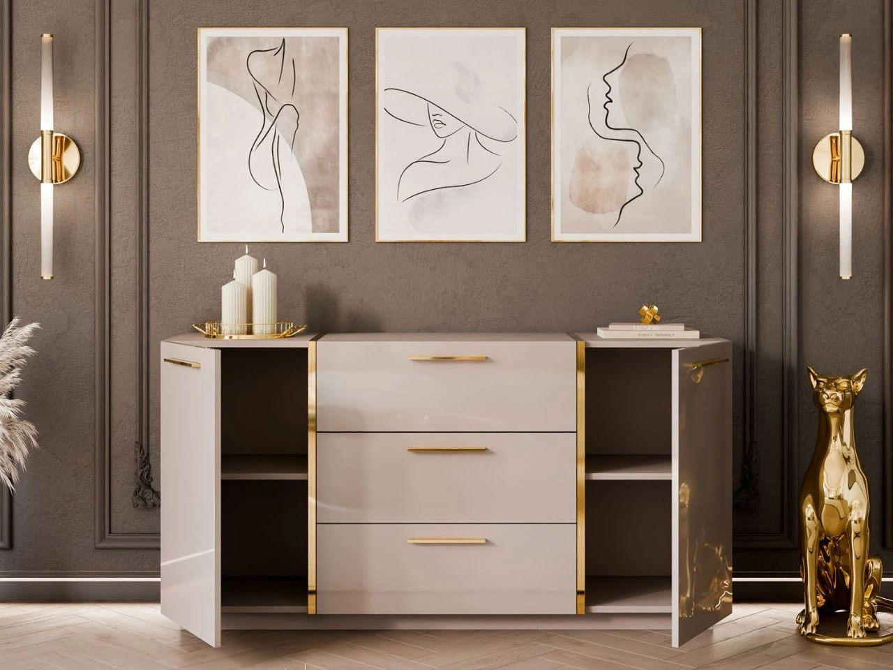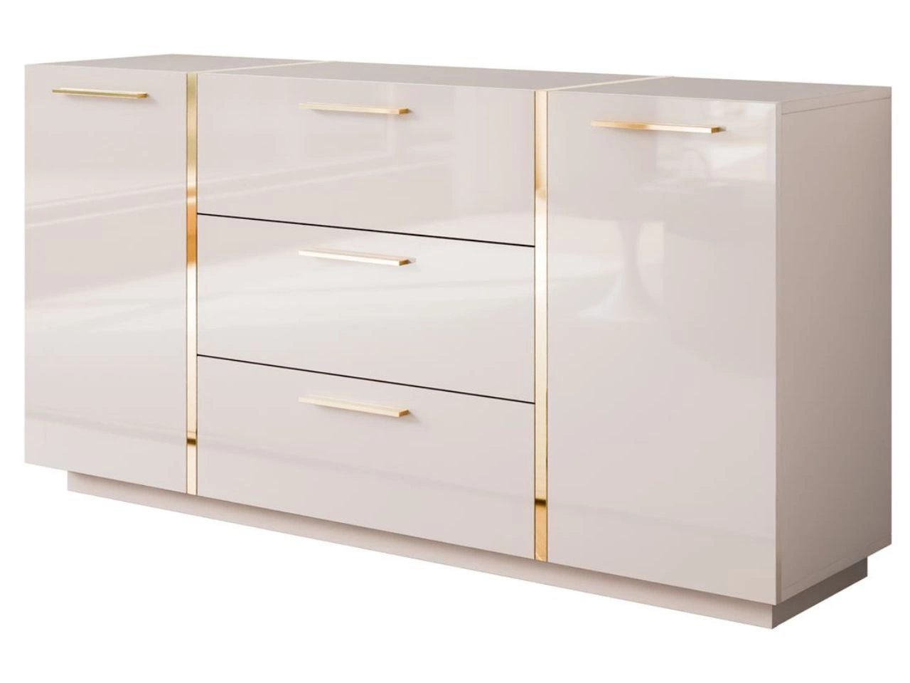 Dwudrzwiowa komoda 158 cm z trzema szufladami Lunelie kaszmir połysk