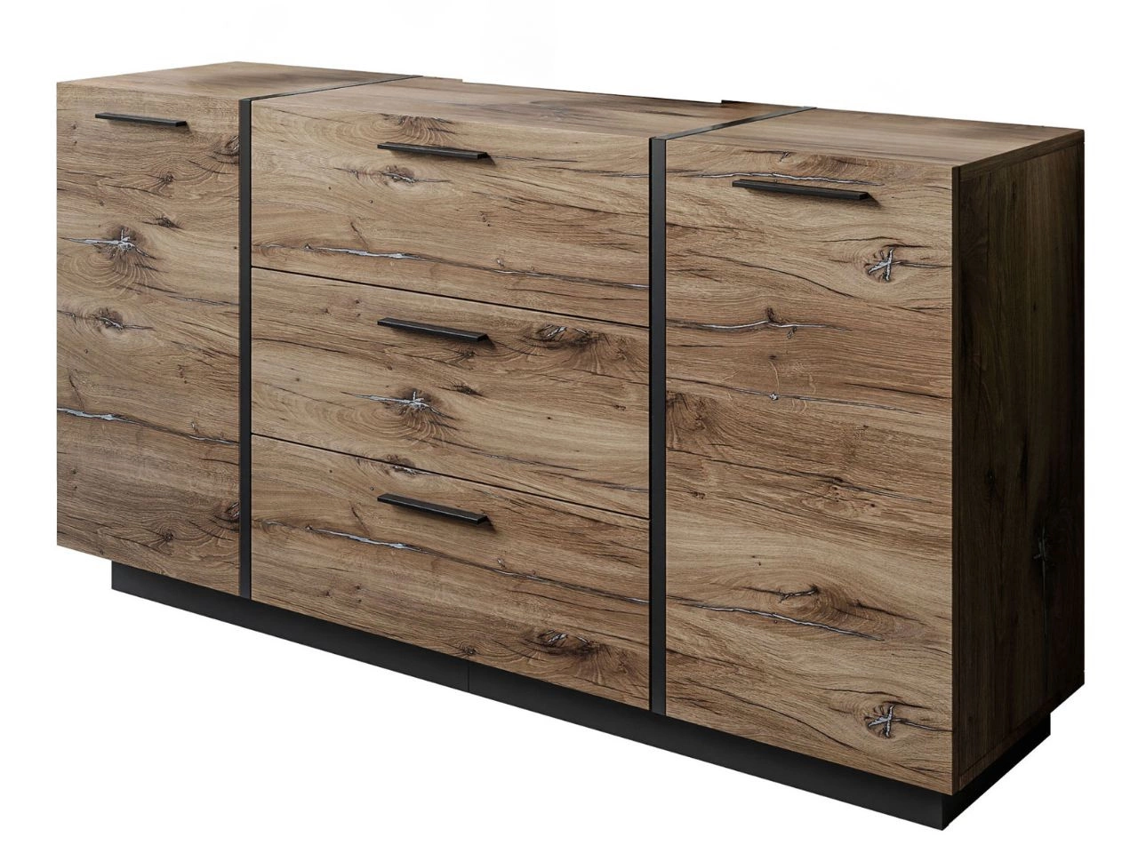 Dwudrzwiowa komoda 158 cm z trzema szufladami Lunelie dąb Flagstaff