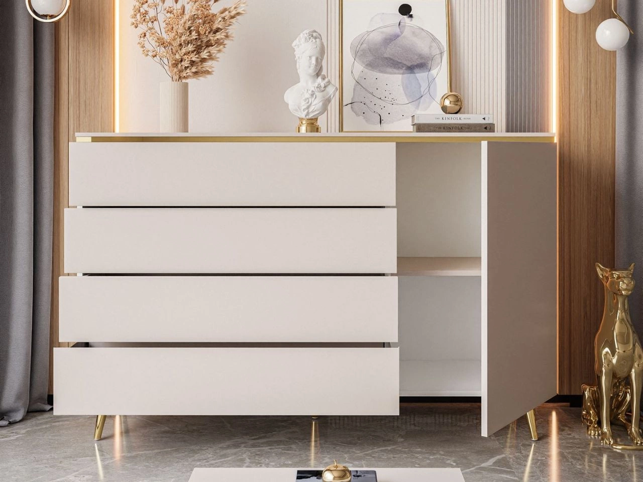 Komoda z drzwiami i czterema szufladami na złotych nogach Evare Kaszmir