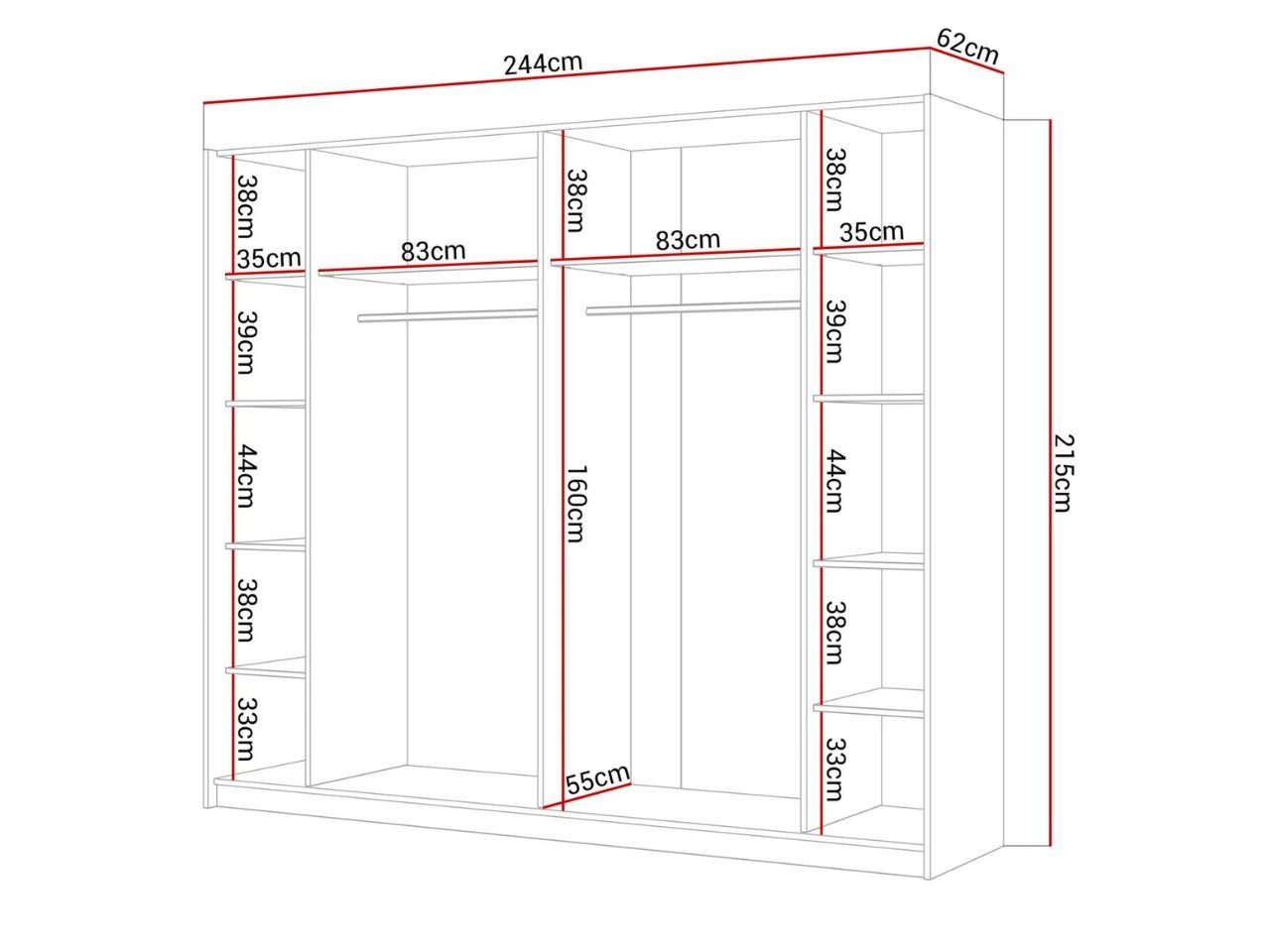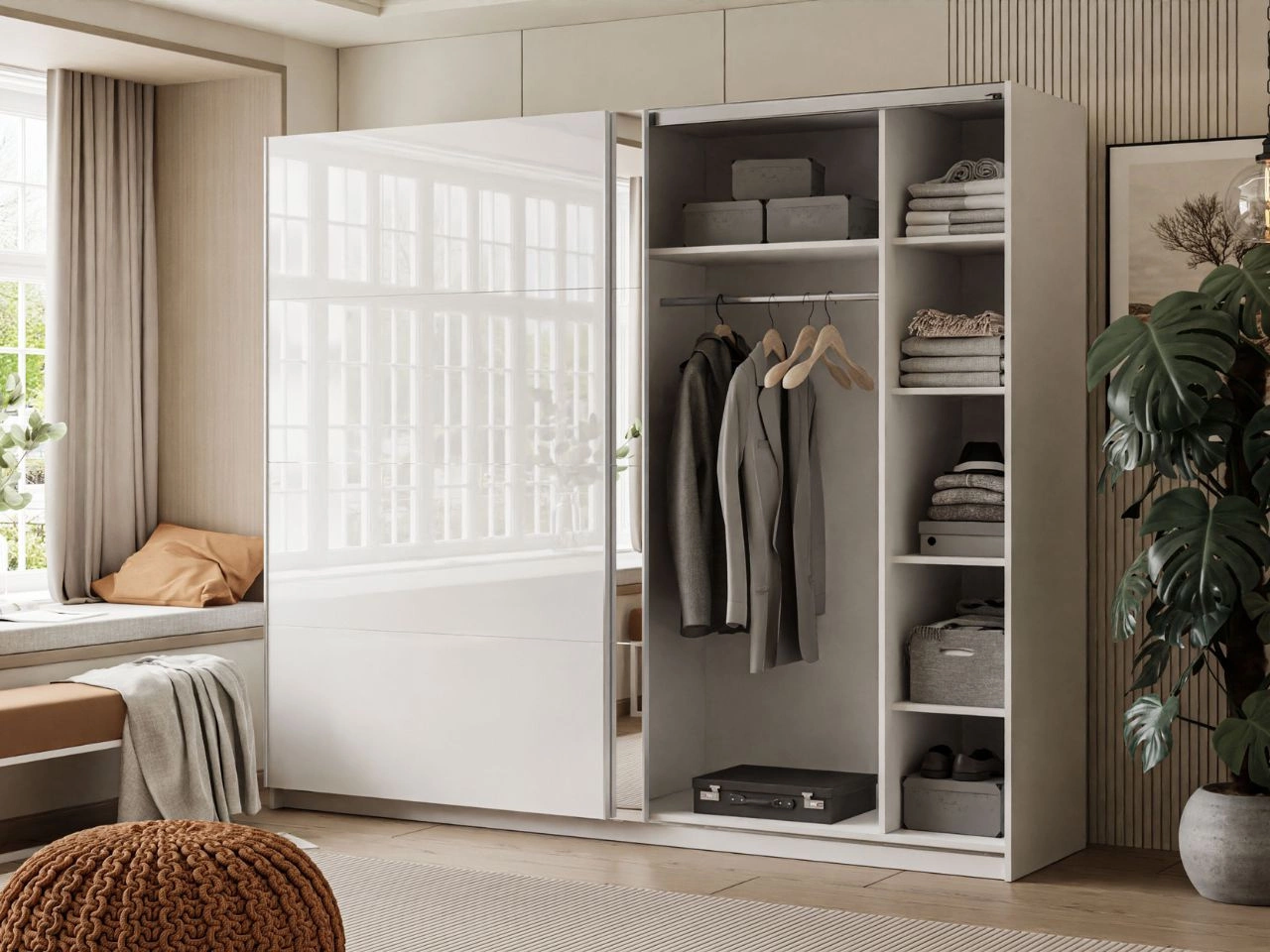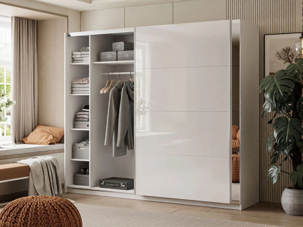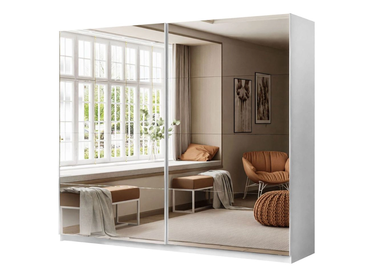 Szafa dwudrzwiowa z drzwiami przesuwnymi i lustrami 244 cm Nuveo Biały połysk
