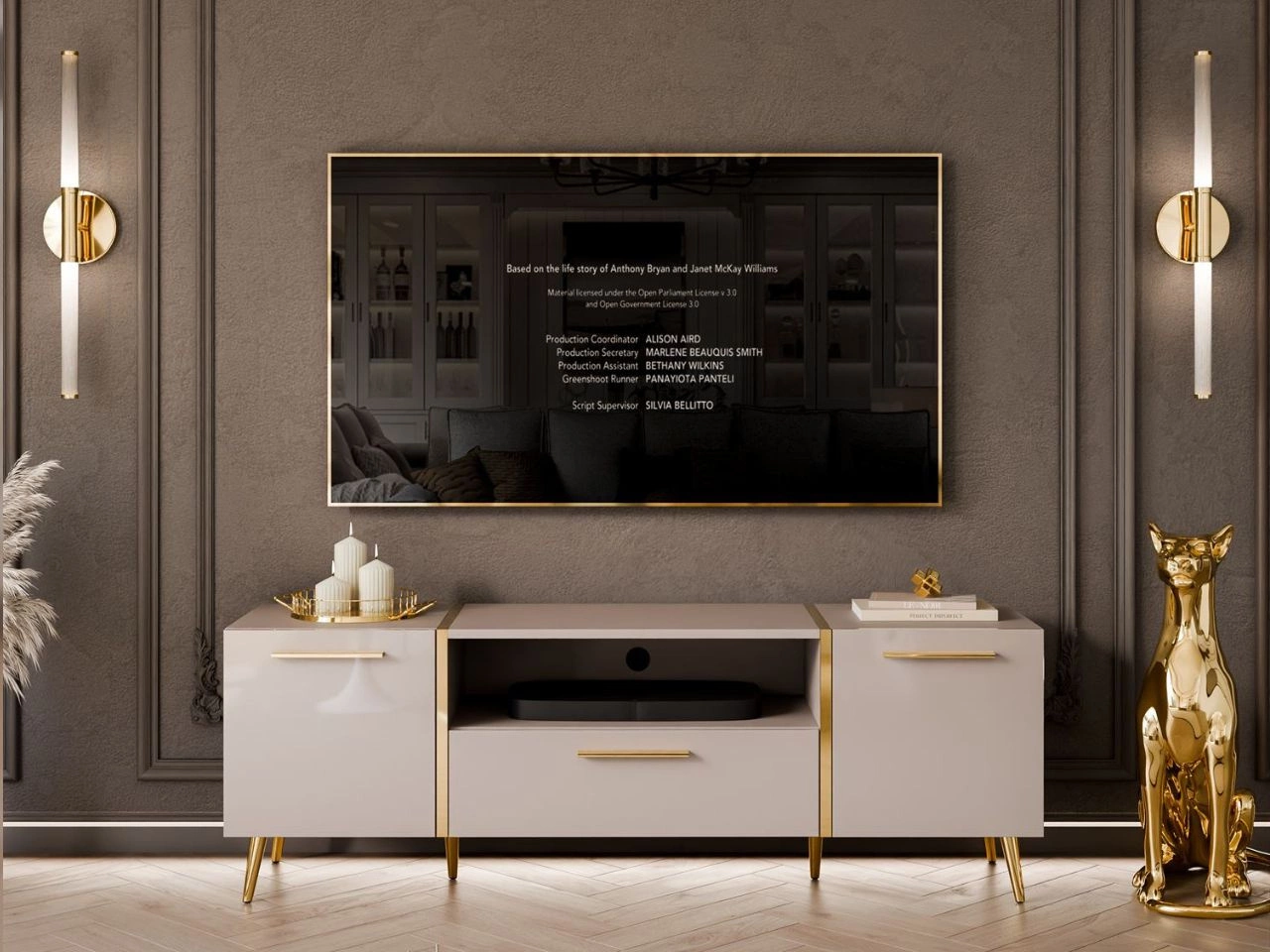Szafka RTV w stylu glamour z szafkami i szufladą Lunelie kaszmir połysk