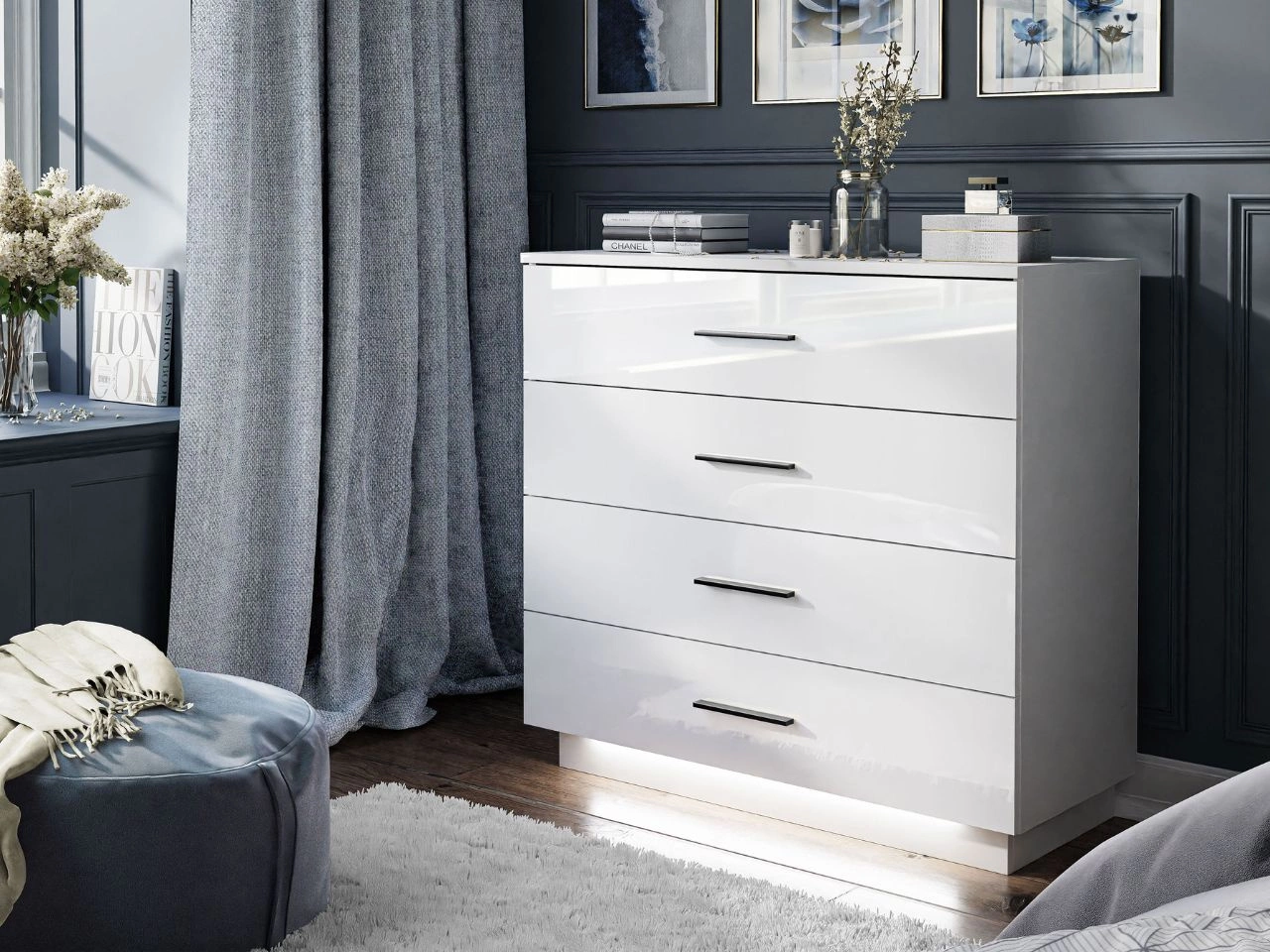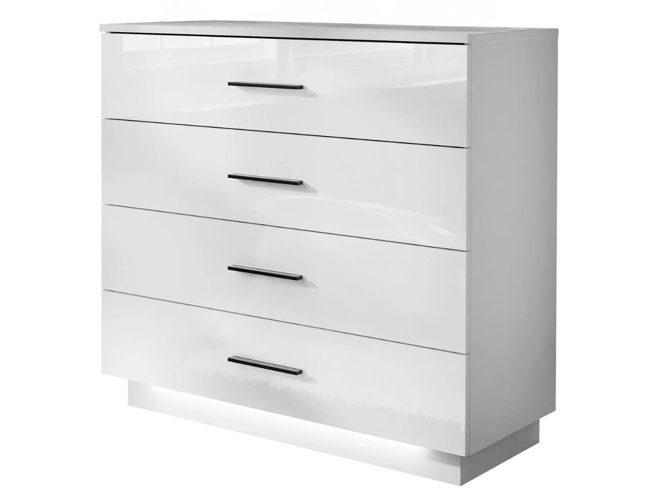 Komoda z czterema szufladami i oświetleniem LED Nuveo Biały połysk
