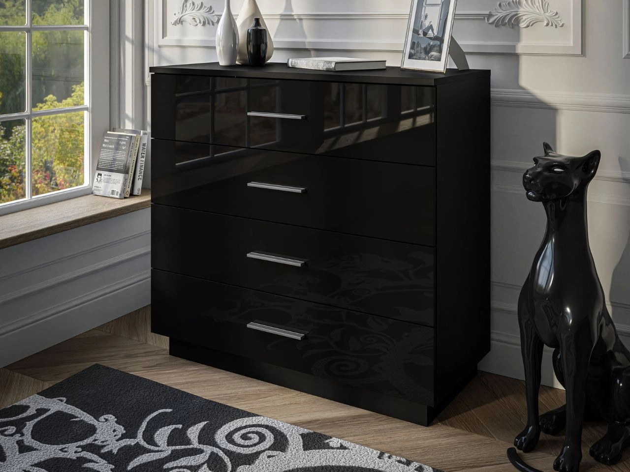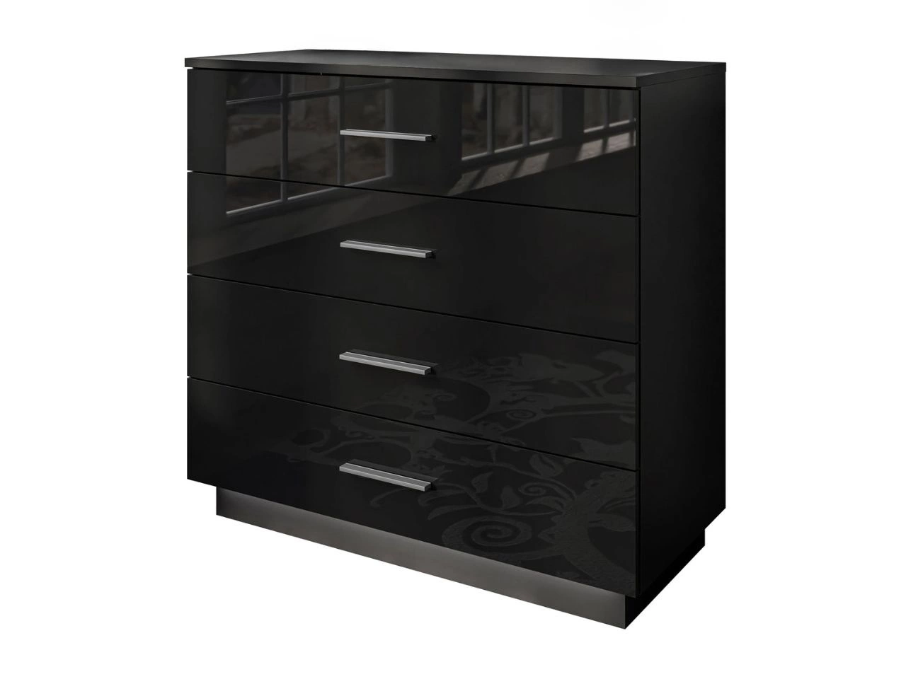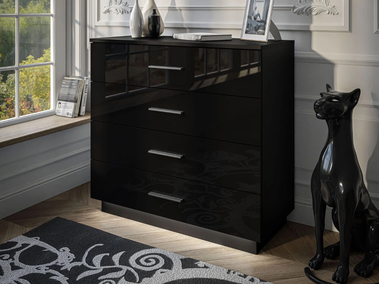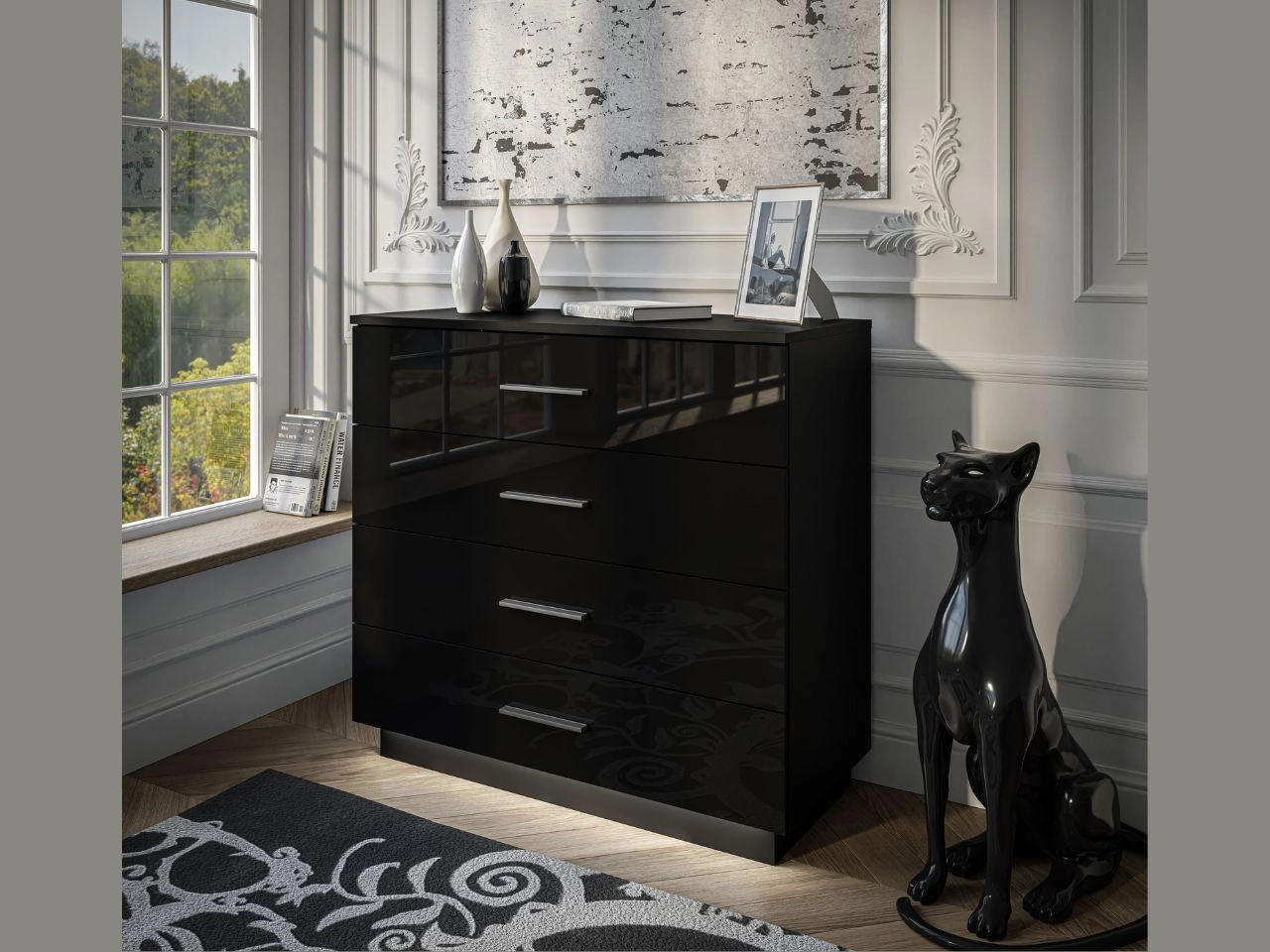 Komoda z czterema szufladami i oświetleniem LED Nuveo Czarny połysk