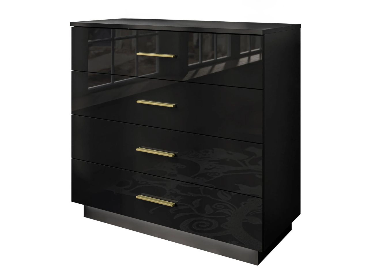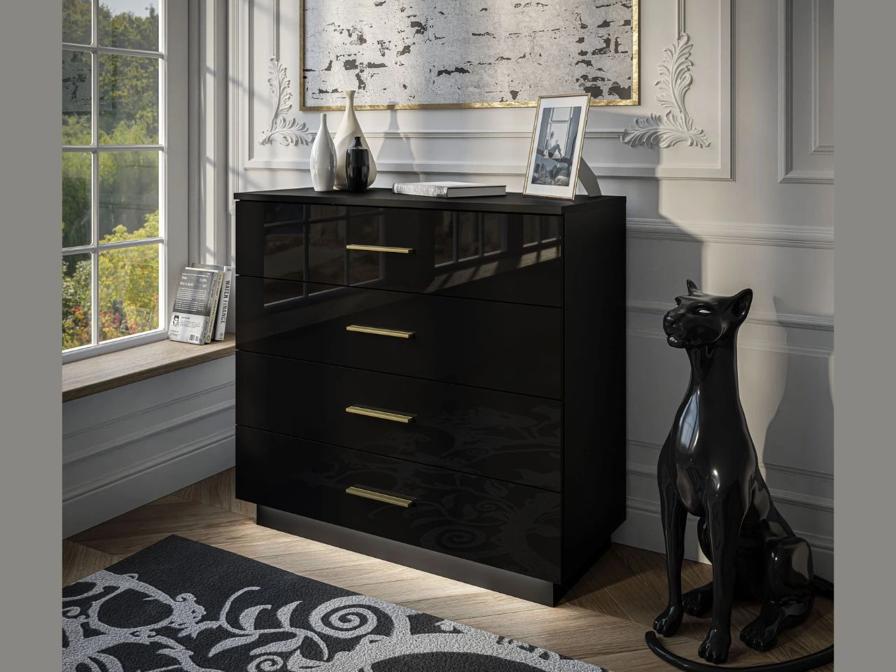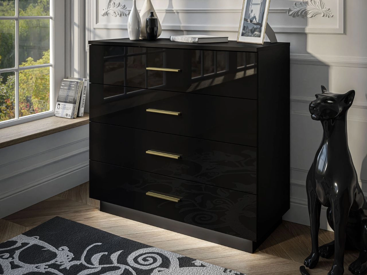 Komoda z czterema szufladami i oświetleniem LED Nuveo Czarny połysk