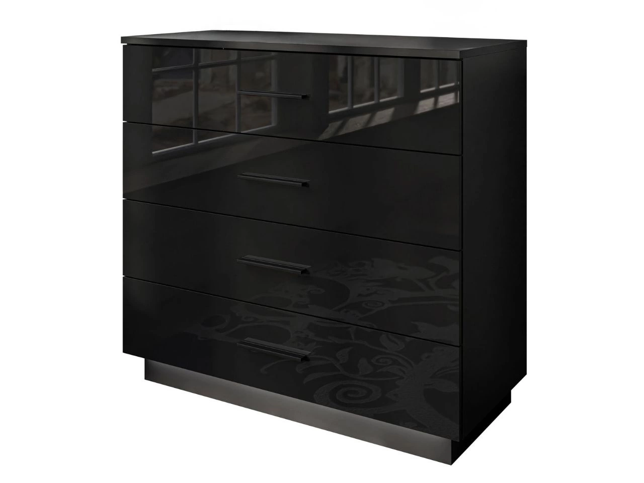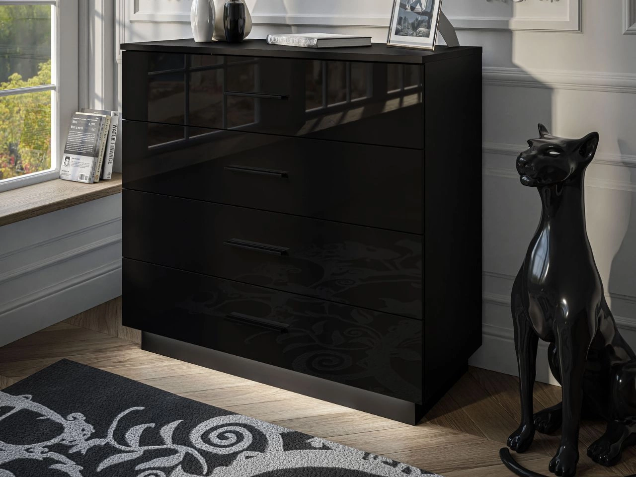 Komoda z czterema szufladami i oświetleniem LED Nuveo Czarny połysk