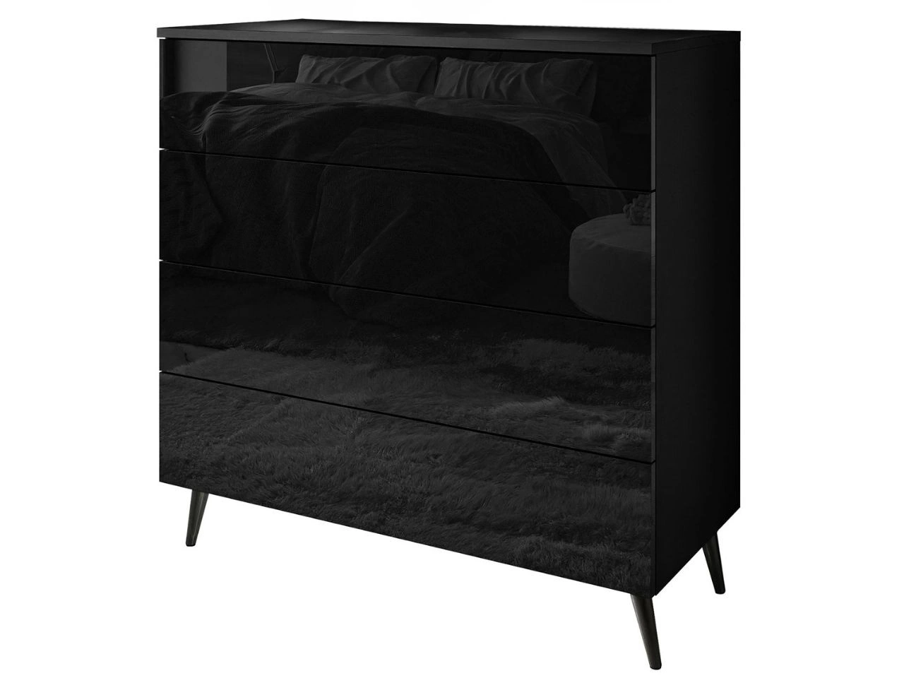 Komoda z czterema szufladami i oświetleniem LED na czarnych nóżkach Nuveo Czarny połysk