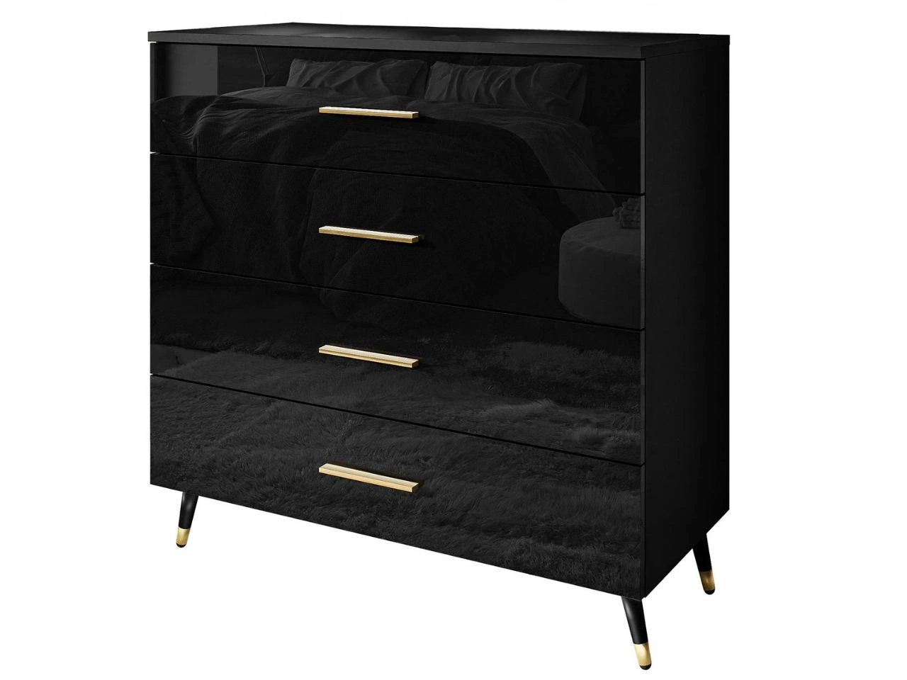 Komoda z czterema szufladami i oświetleniem LED na czarno-złotych nóżkach Nuveo Czarny połysk