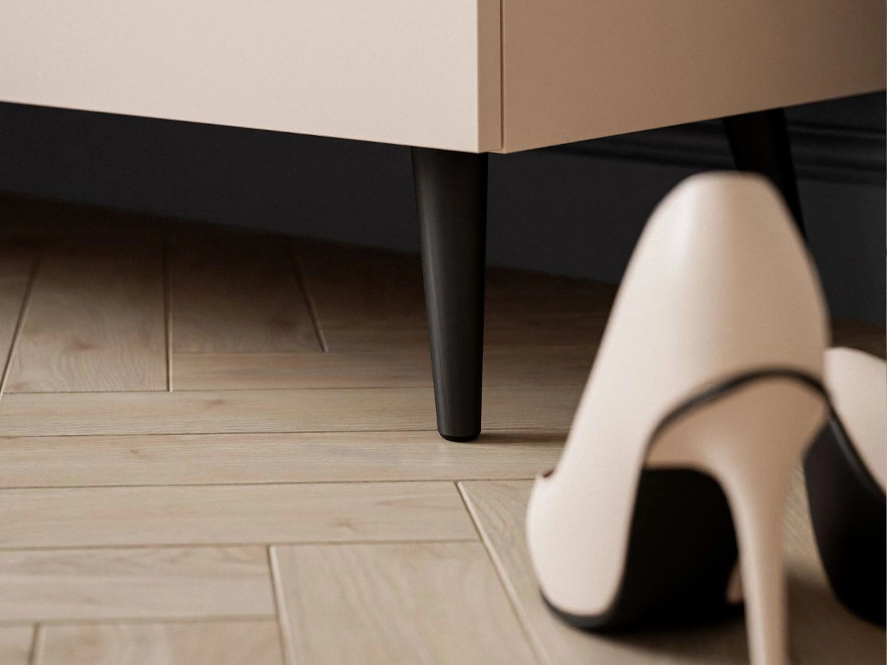 Kolekcja Nuveo łączy nowoczesny design, funkcjonalność i solidne wykonanie, oferując szerokie możliwości personalizacji – od koloru frontów, przez rodzaj nóżek, aż po system otwierania drzwi, zarówno klasyczne uchwyty, jak i PUSH TO OPEN. W serii dostępne są komody, szafy, stoliki nocne, co pozwala w łatwy sposób stworzyć spójny, nowoczesny i niepowtarzalny wystrój wnętrza.