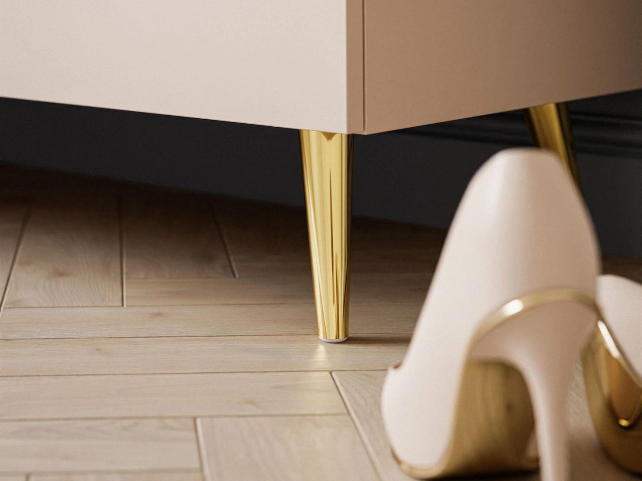 Komoda z szufladami i oświetleniem LED na złotych nogach Nuveo Kaszmir