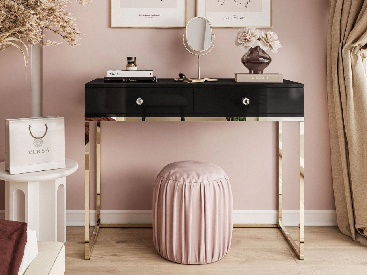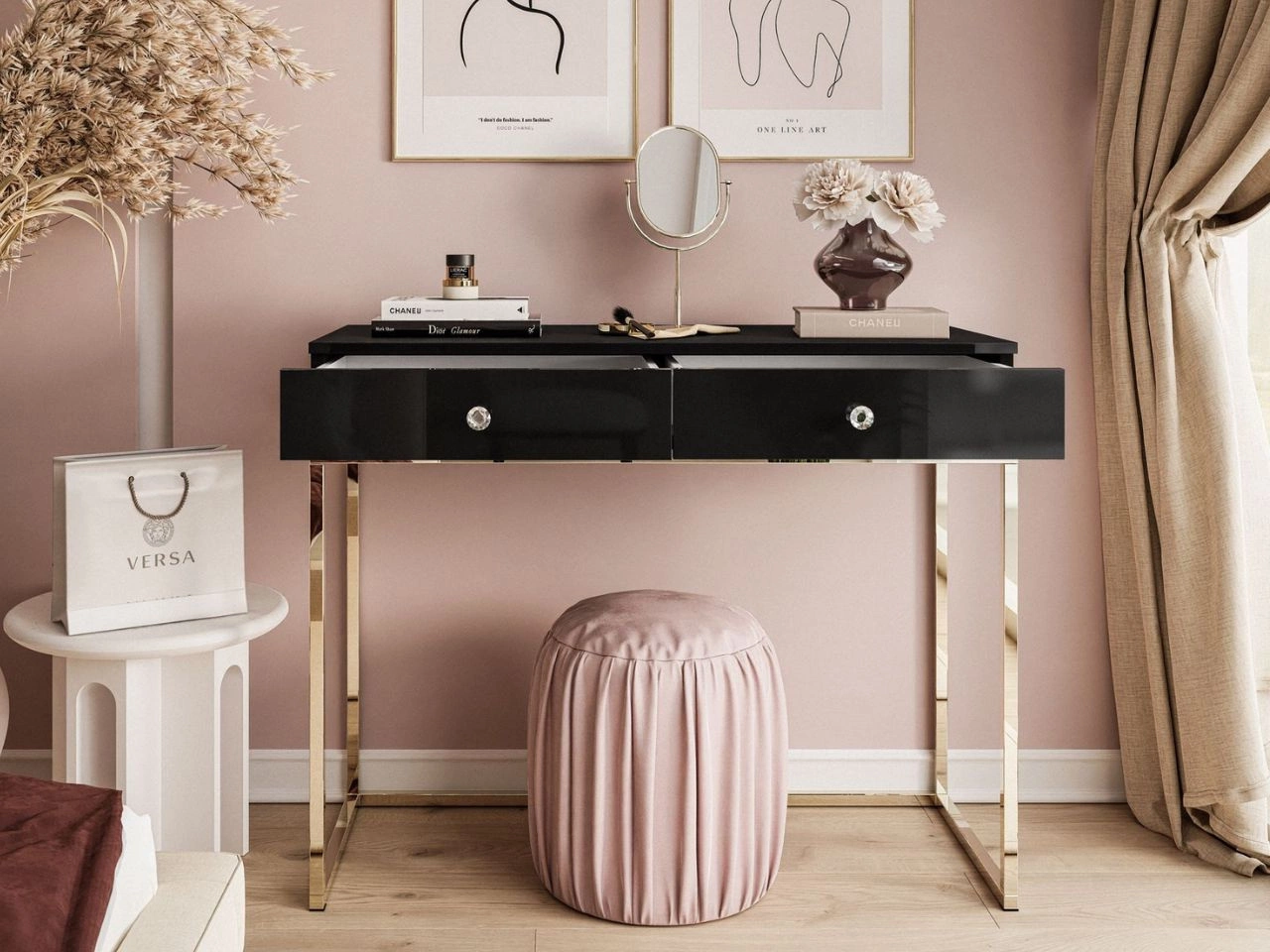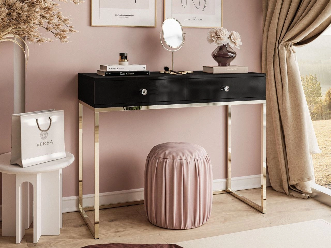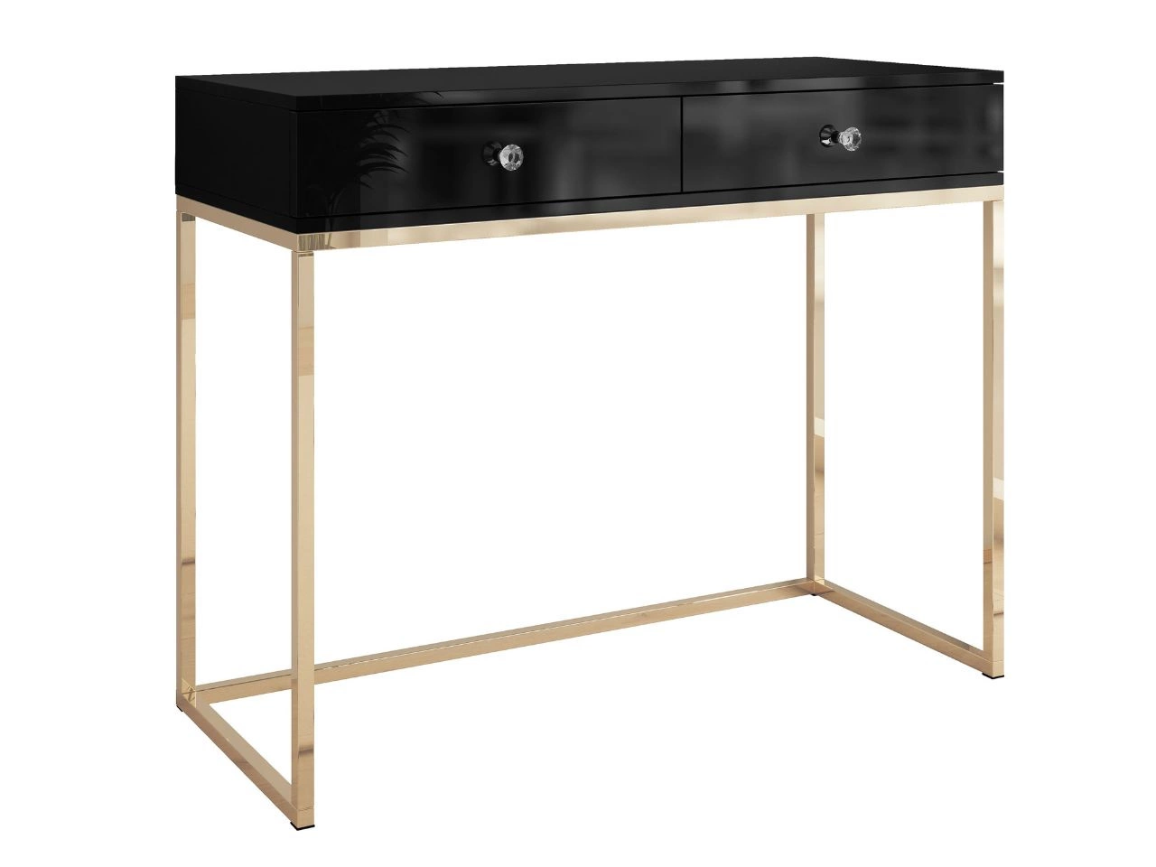 Konsola z szufladami, złotym stelażem i kryształowymi uchwytami Brisa czarny połysk