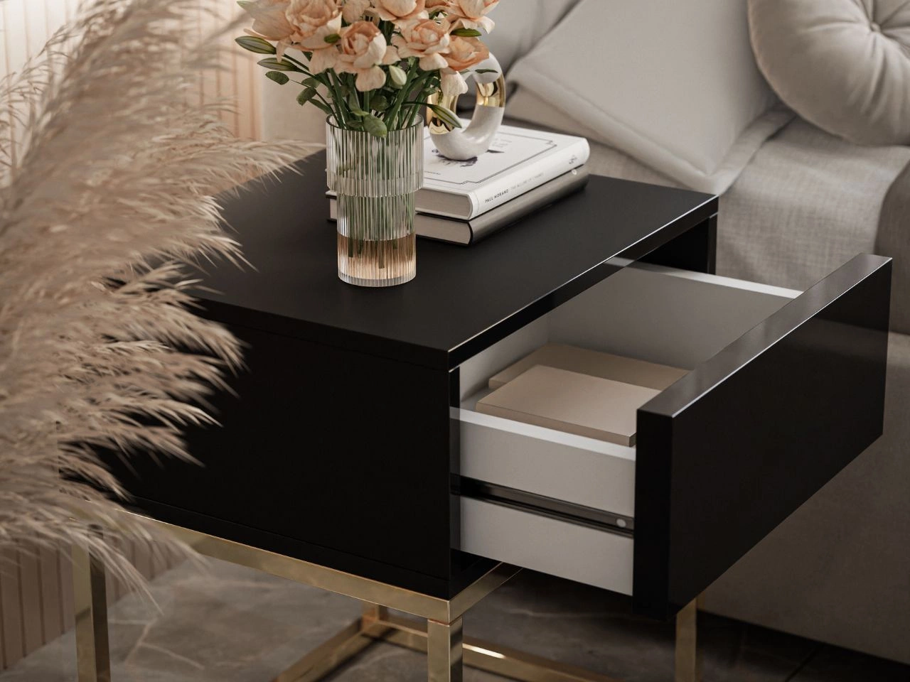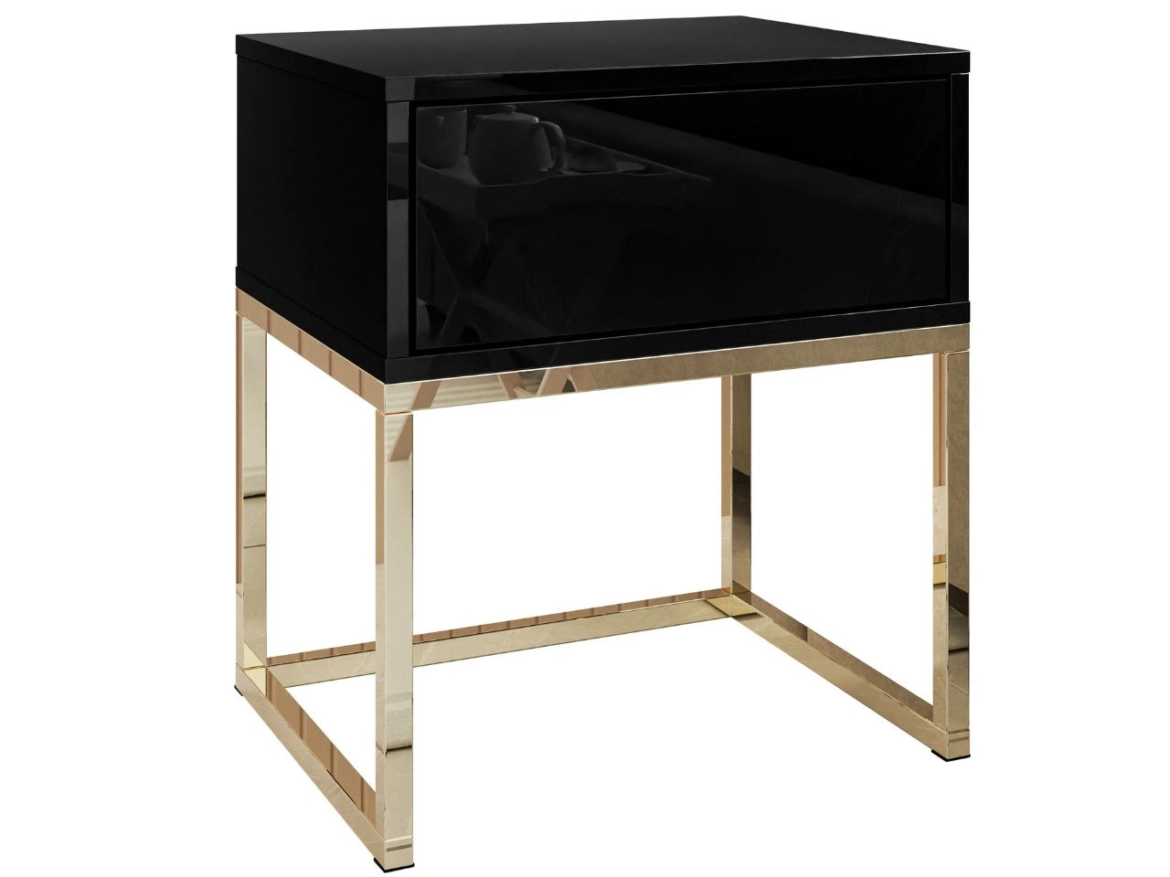 Stolik nocny z szufladą i złotymi nogami Brisa czarny połysk