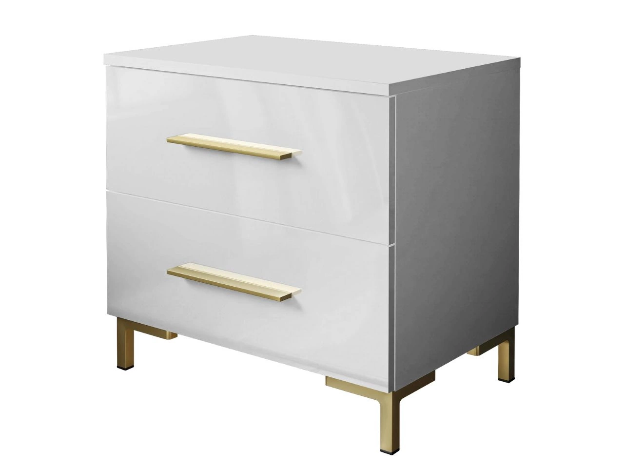 Stolik nocny z szufladami na złotych nogach Nuveo Biały połysk