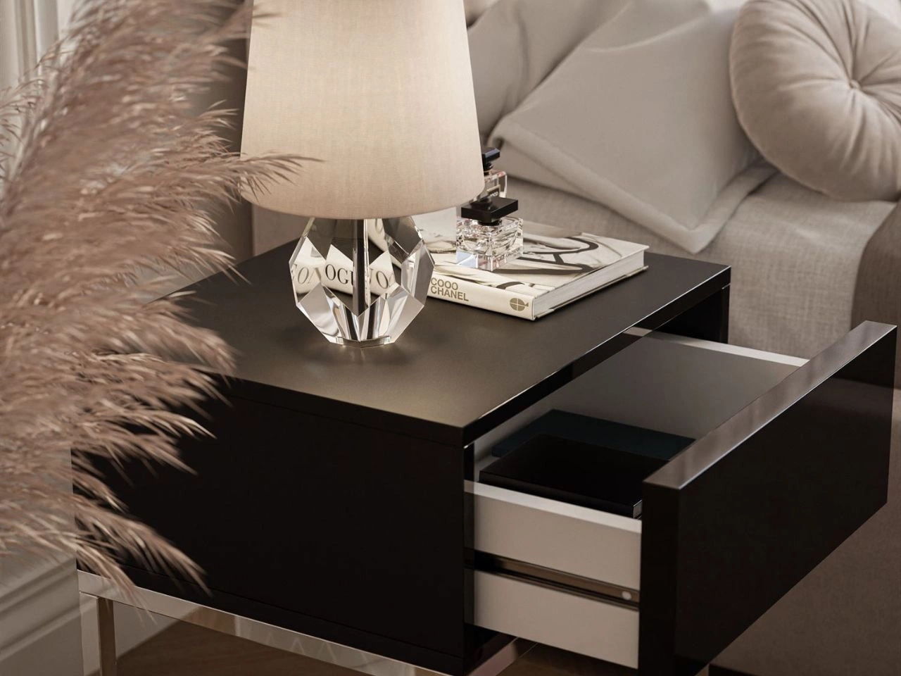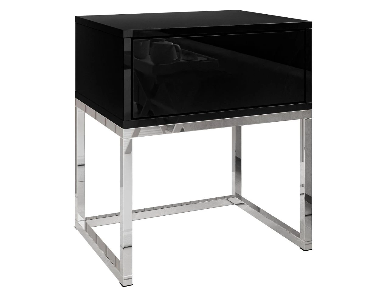 Stolik nocny z szufladą i srebrnymi nogami Brisa czarny połysk
