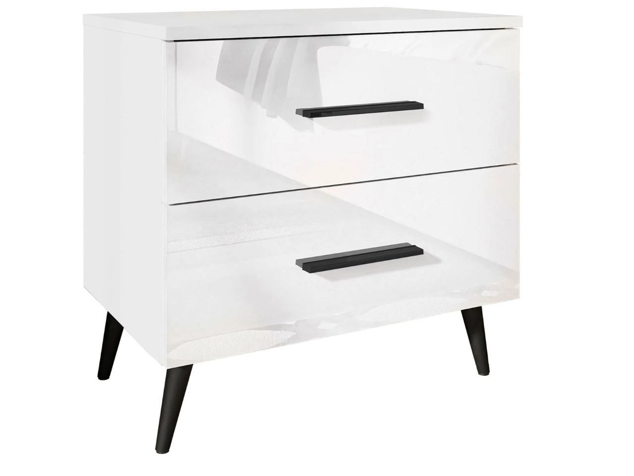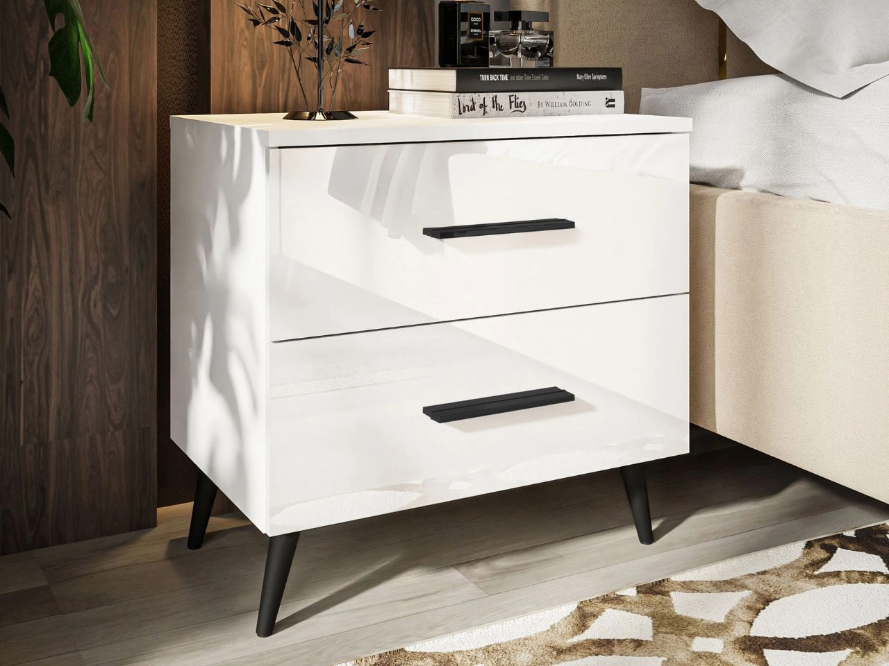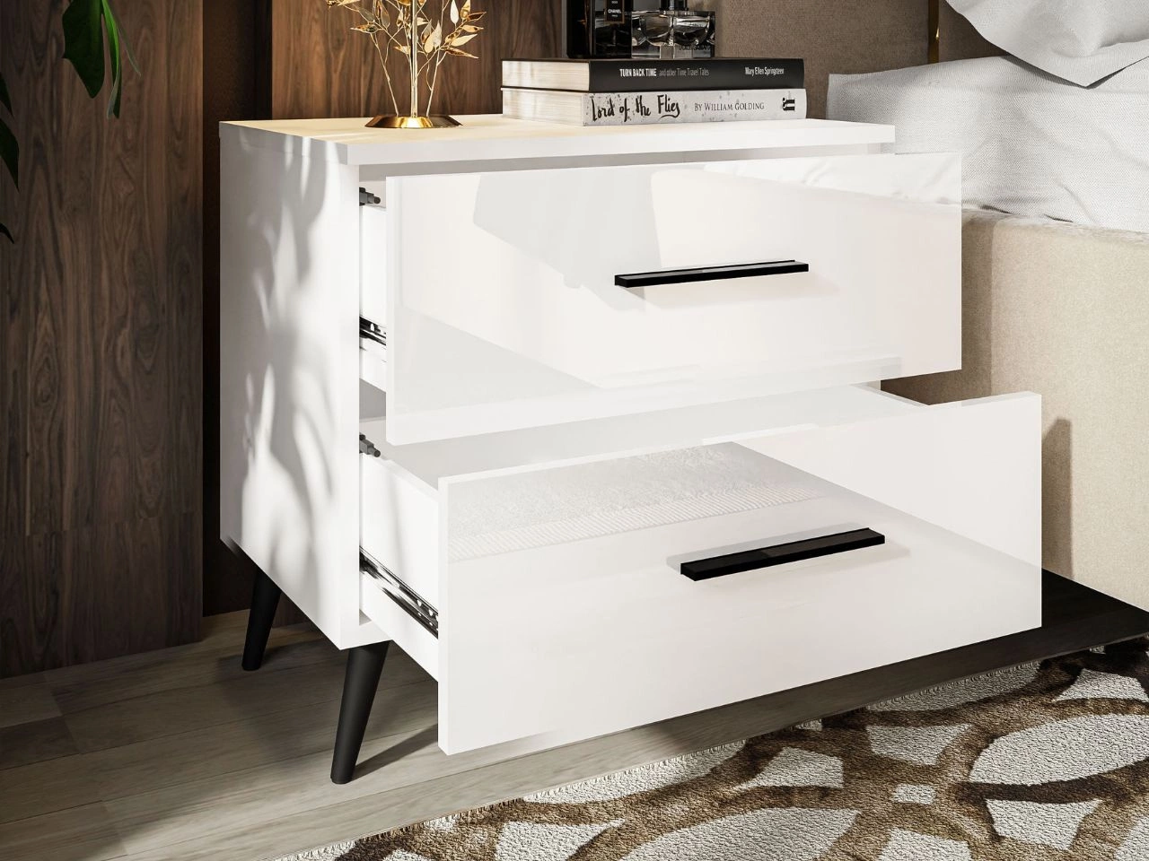 Stolik nocny z szufladami na czarnych nogach Nuveo Biały połysk