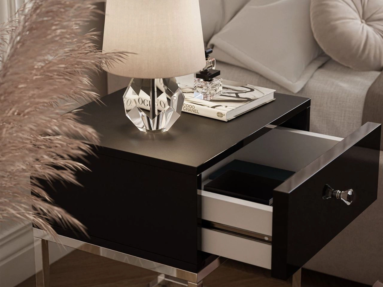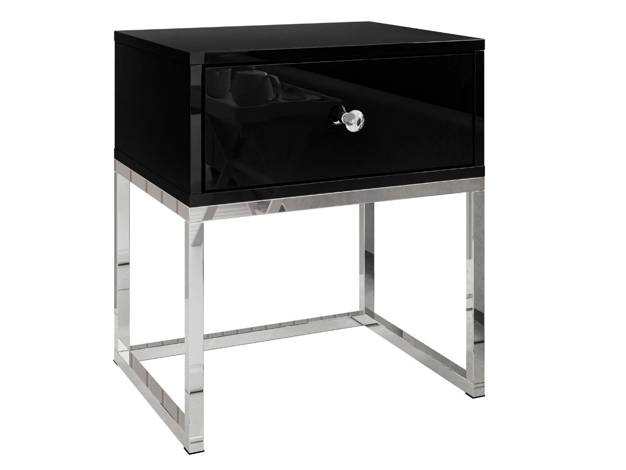 Stolik nocny glamour z szufladą i srebrnymi nogami Brisa czarny połysk