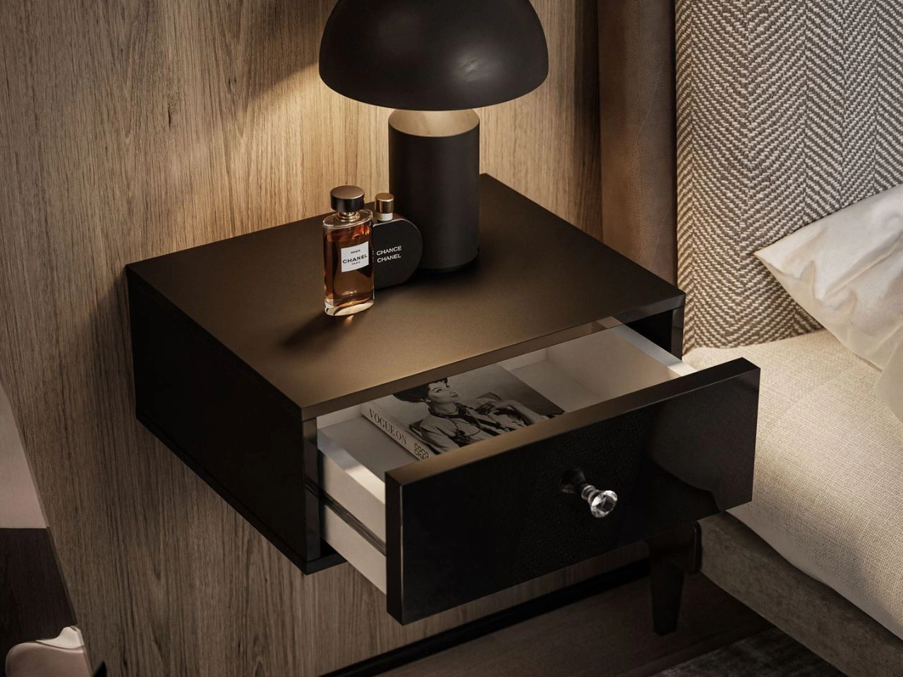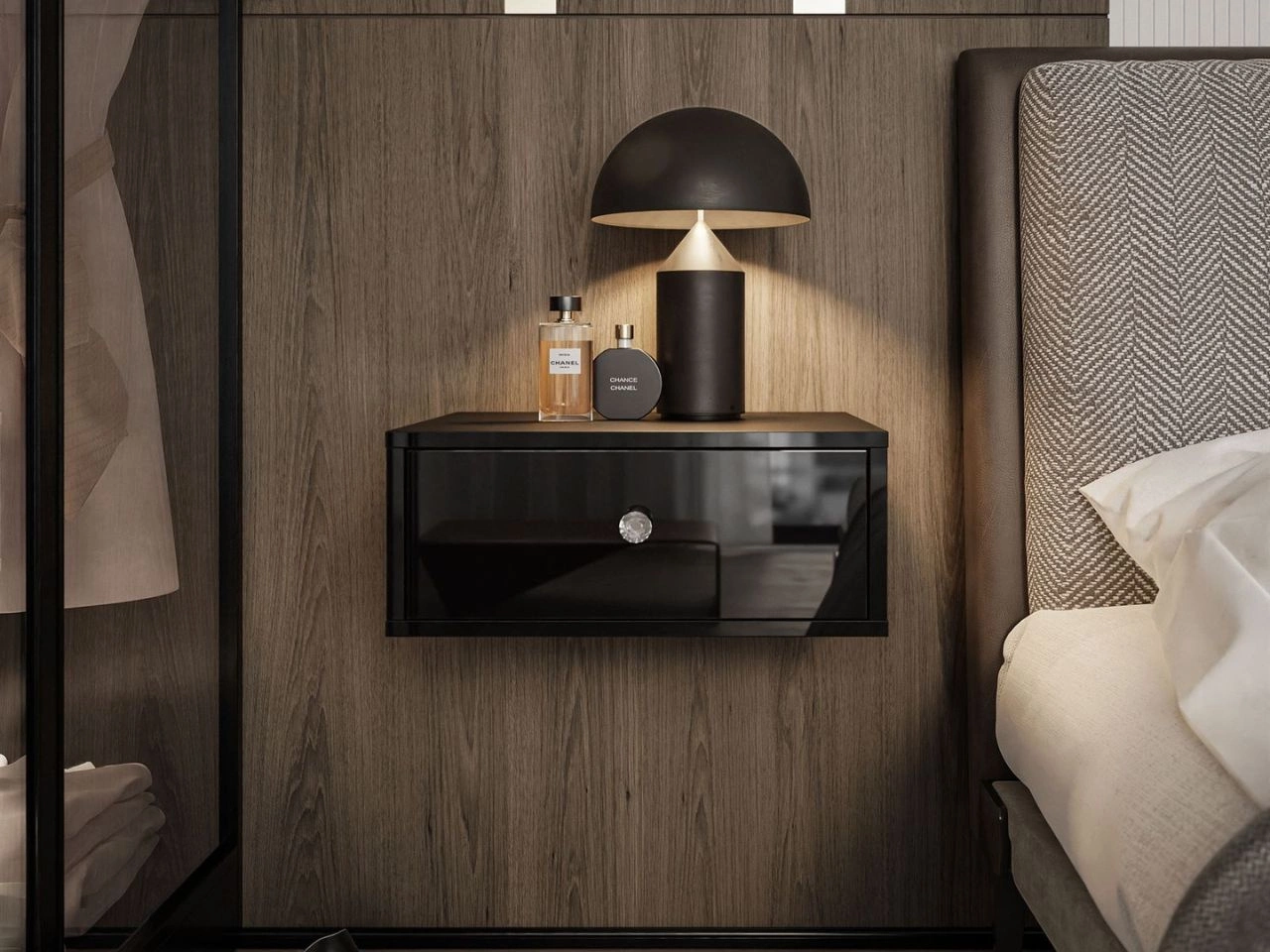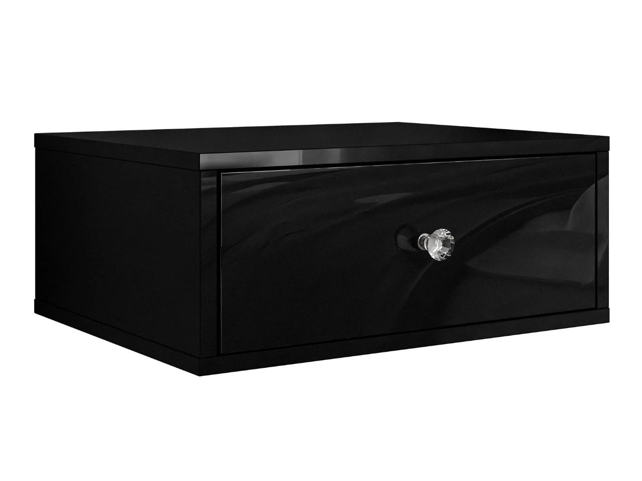 Stolik nocny wiszący z szufladą i kryształowym uchwytem Brisa czarny połysk