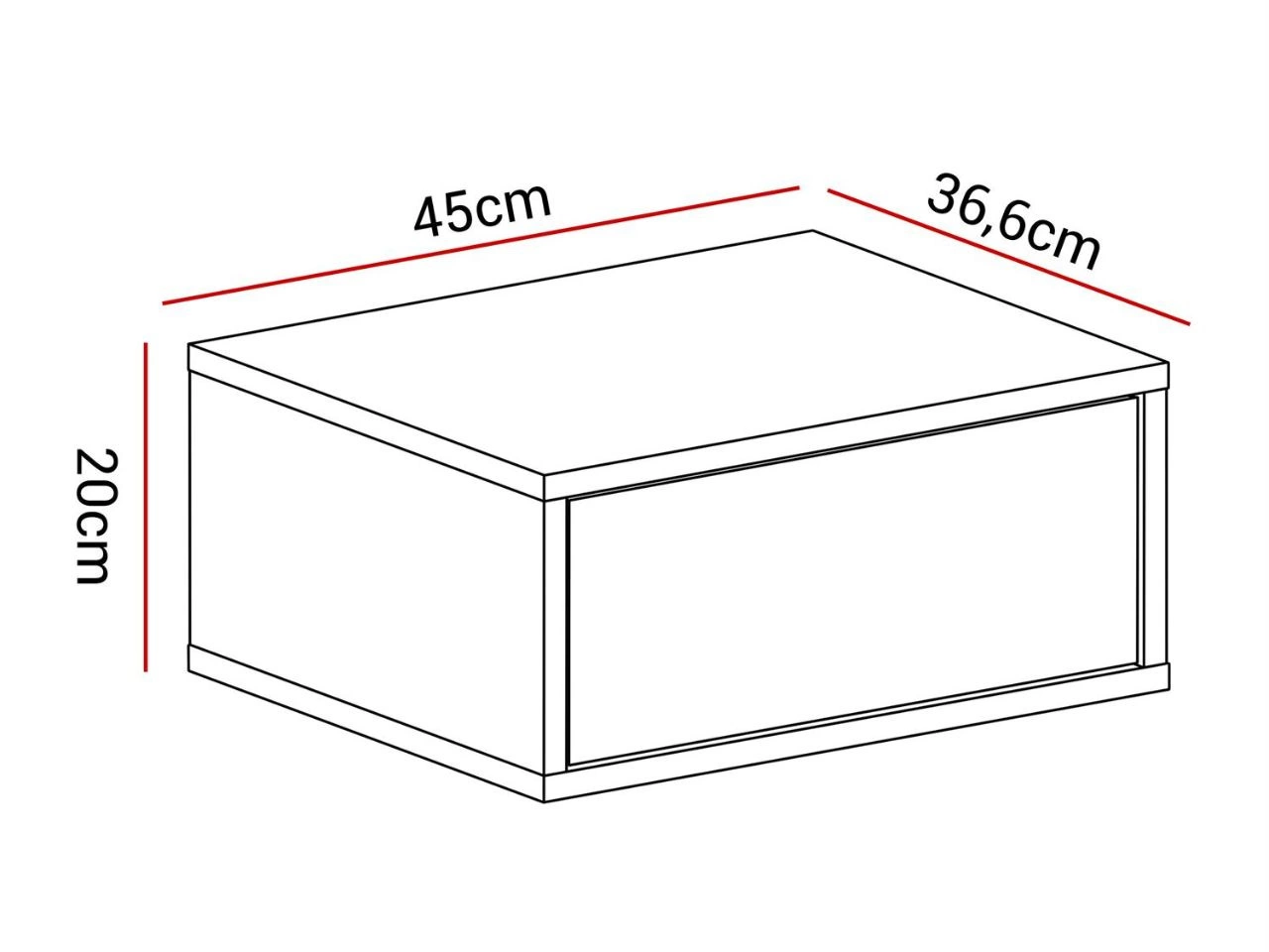 Szafka nocna wisząca Brisa, to bardzo zgrabny mebel o minimalistycznym charakterze. Jego front wykończony został w białym wysokim połysku, w kontraście do korpusu, który pozostał matowy. Front skrywa za sobą praktyczną szufladę, która porusza się na prowadnicach kulkowy, a jej otwieranie odbywa się za pomocą kryształowego uchwytu