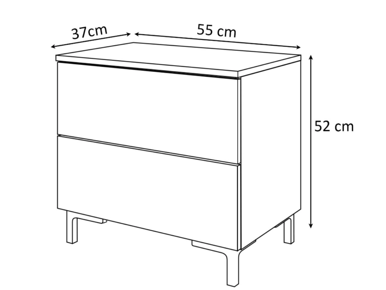 Stolik nocny Nuvego wyposażono w dwie pojemne szuflady, które ułatwiają przechowywanie książek, akcesoriów czy drobiazgów. Obszerny blat świetnie sprawdzi się jako miejsce na lampkę nocną, budzik czy dekoracje, dzięki czemu mebel jest zarówno praktyczny, jak i estetyczny.