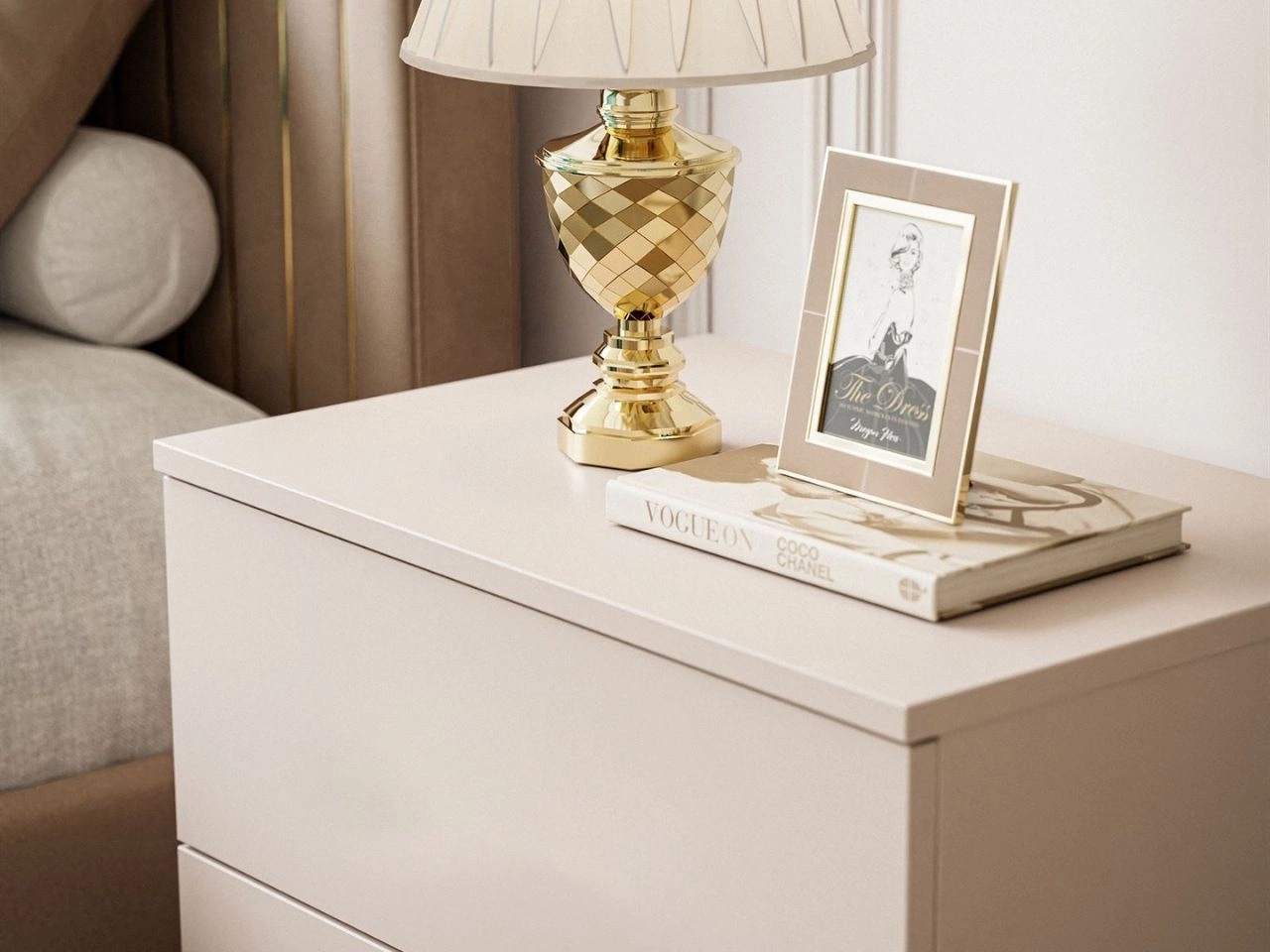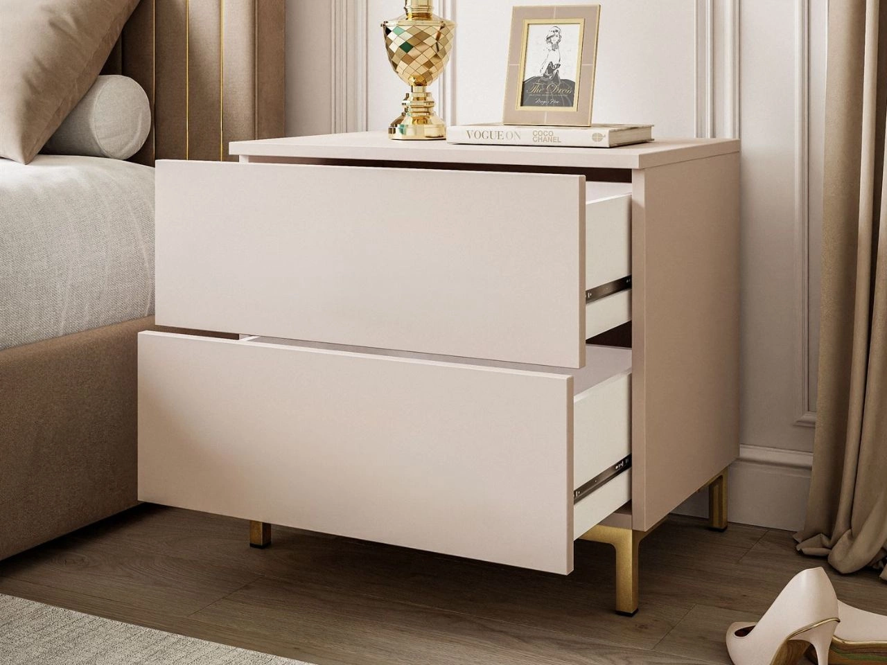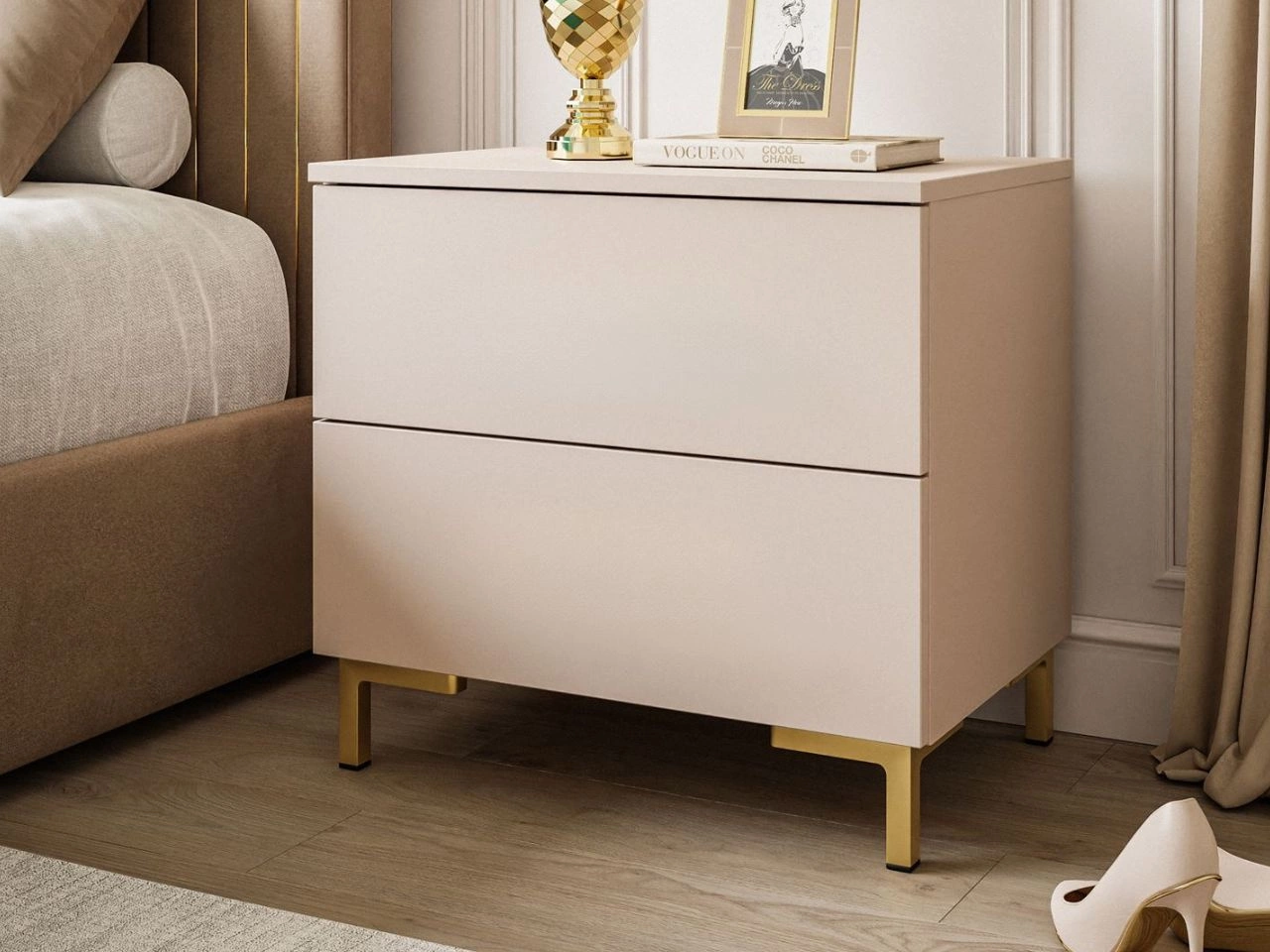 Stolik nocny z dwoma szufladami na złotych nóżkach Nuveo Kaszmir