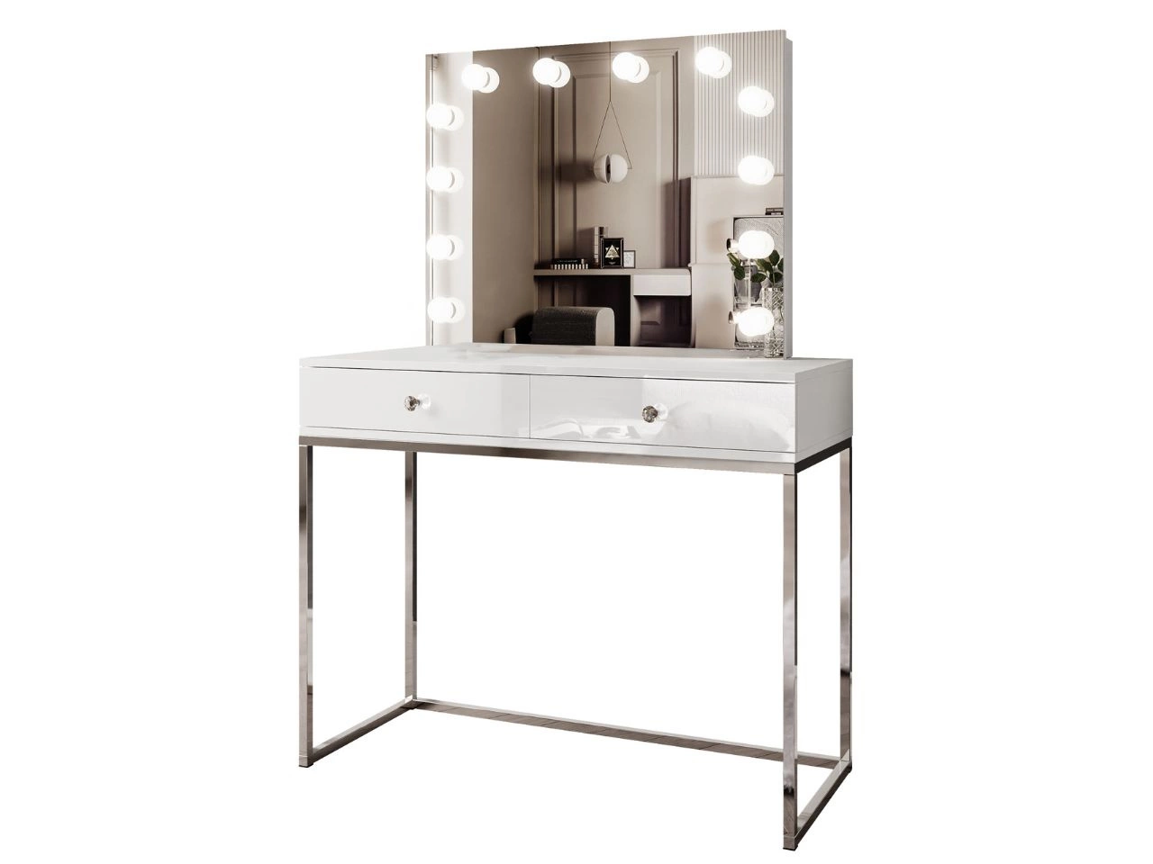 Toaletka glamour z szufladami, lustrem i oświetleniem LED Brisa biały połysk