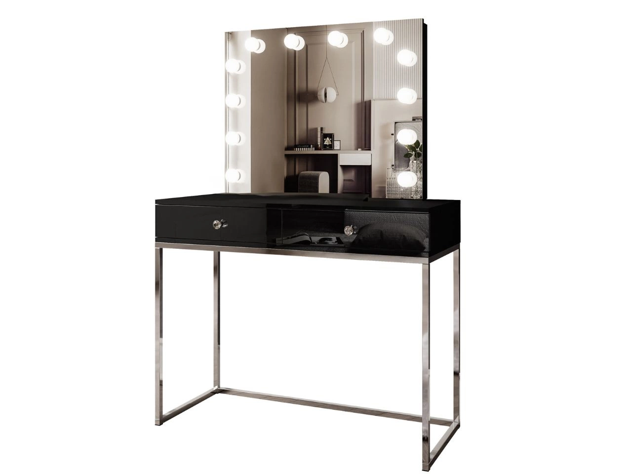 Toaletka glamour z szufladami, lustrem i oświetleniem LED Brisa czarny połysk