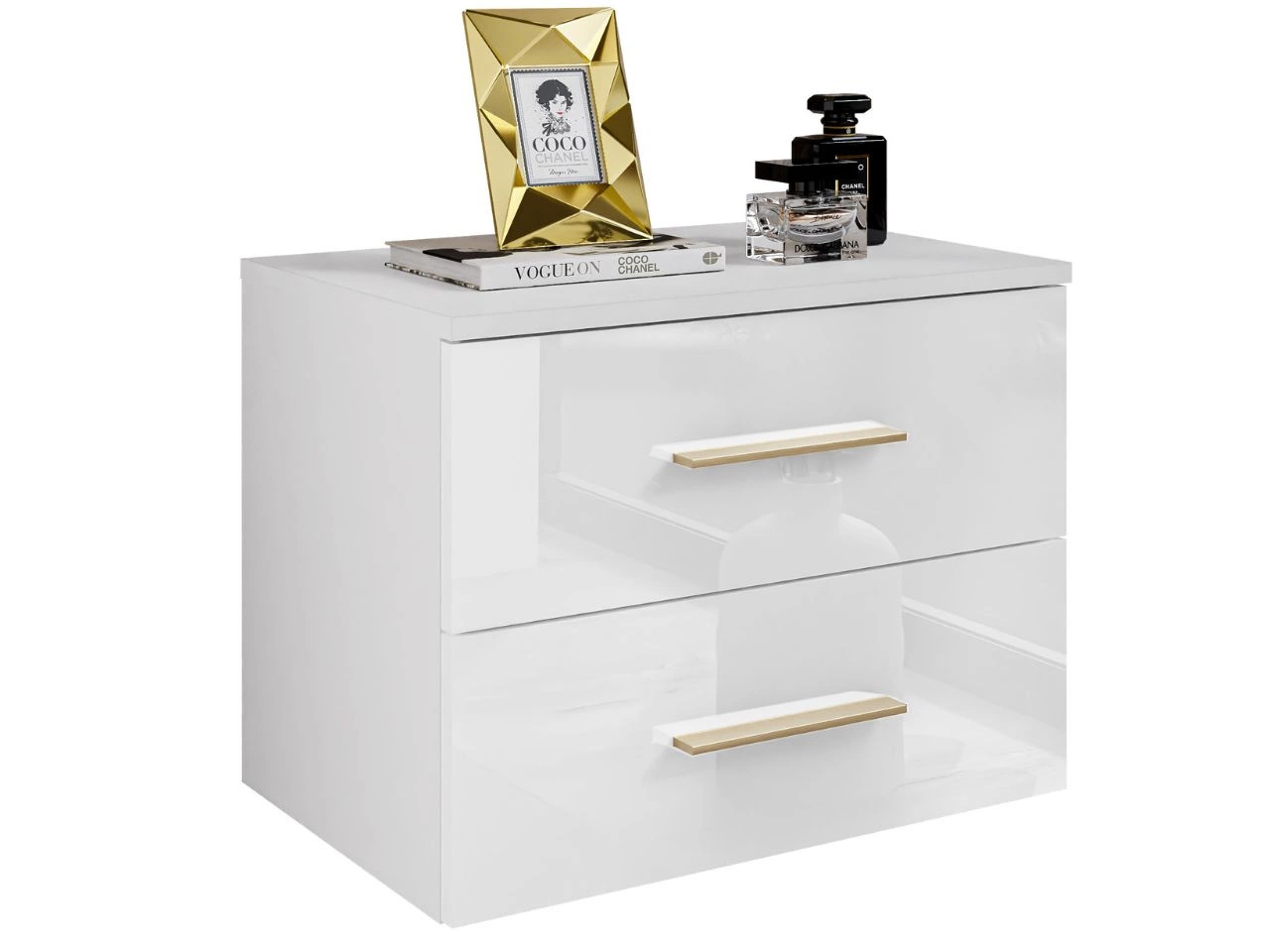 Dobierasz do: Podwieszany stolik nocny z dwoma szufladami Nuveo Biały połysk