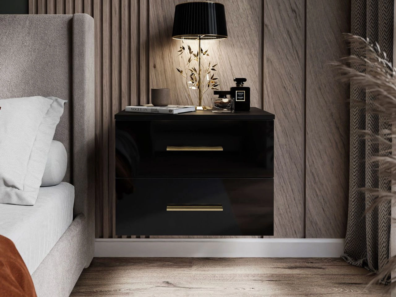 Podwieszany stolik nocny z dwoma szufladami Nuveo Czarny połysk