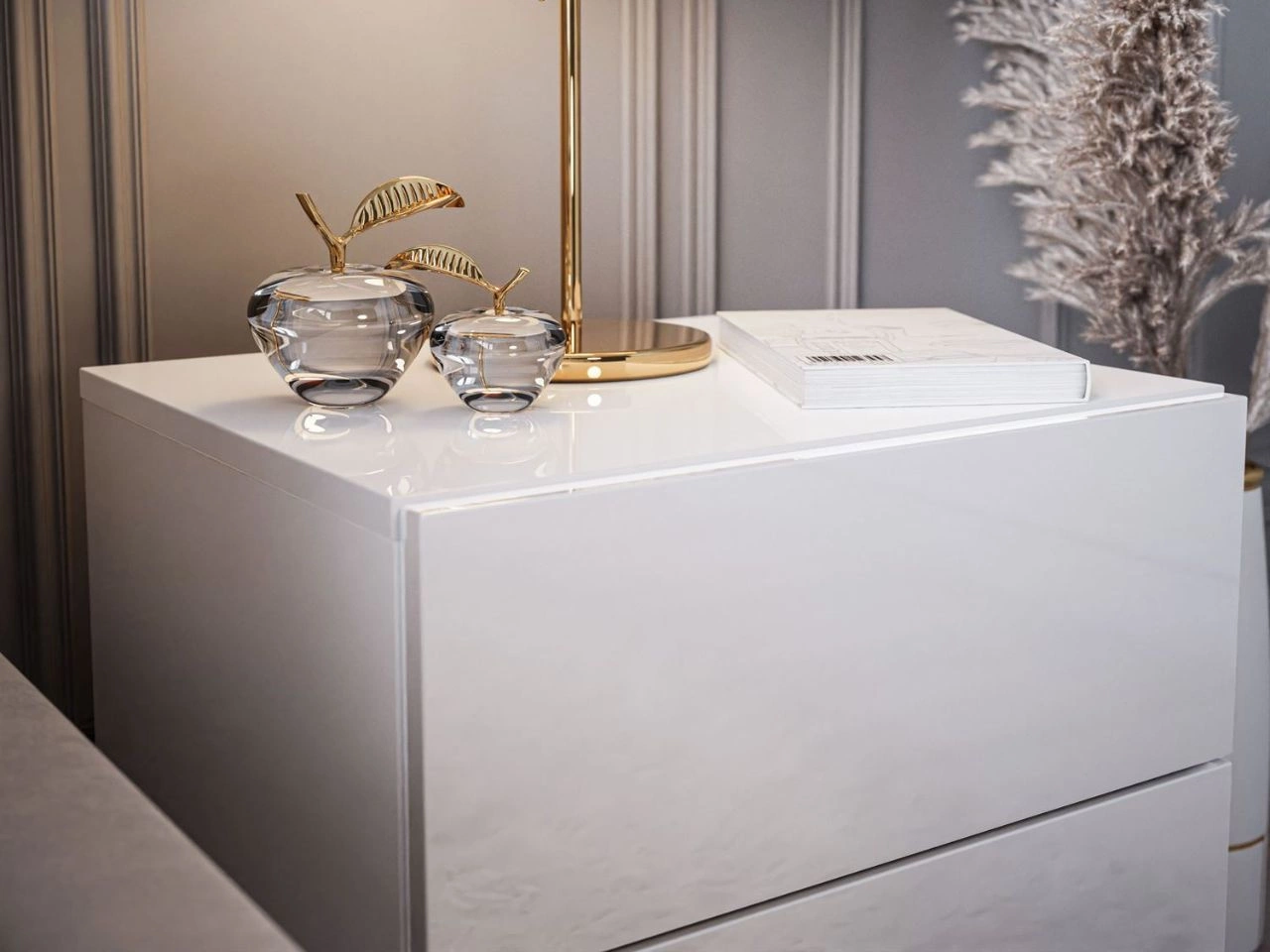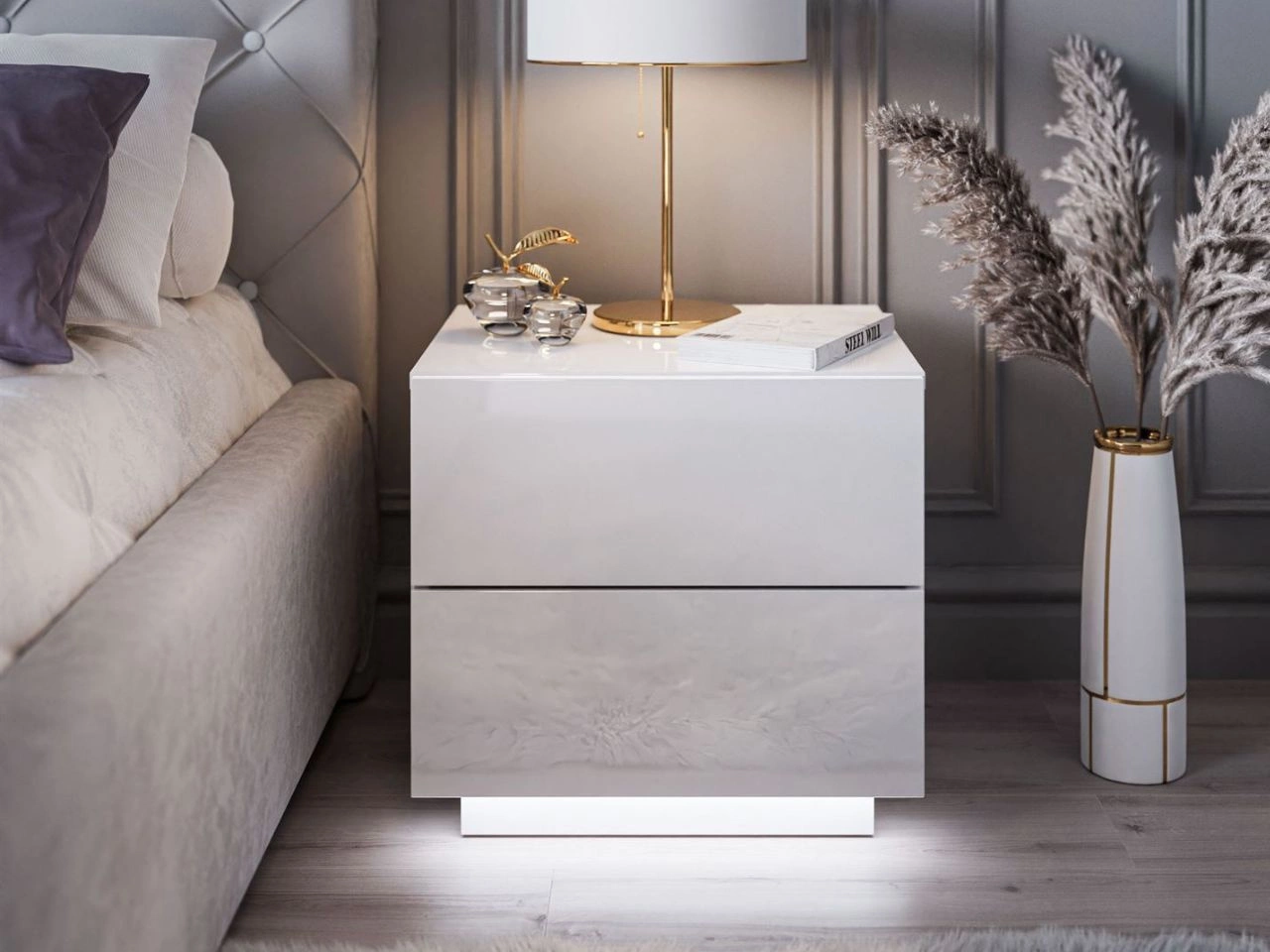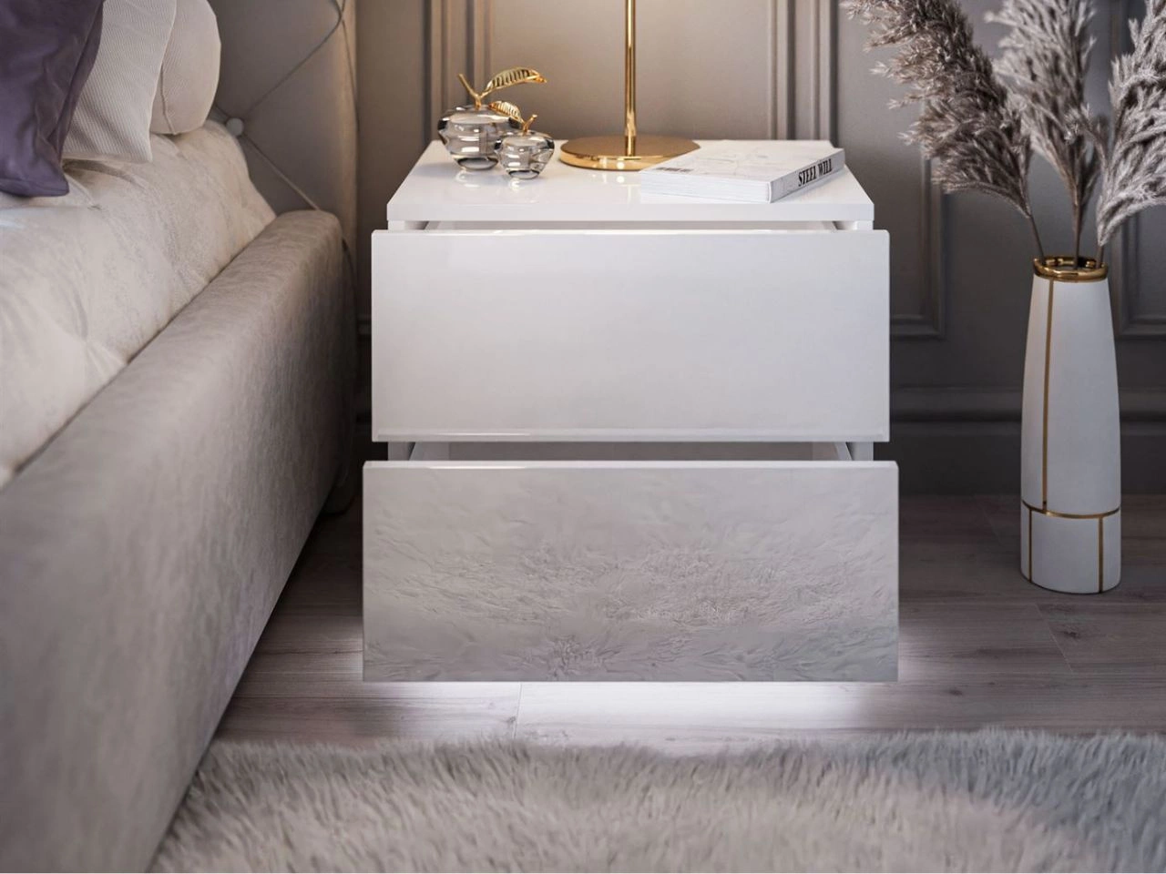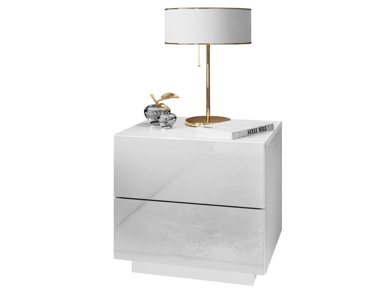 Stolik nocny z dwoma szufladami Nuveo Lux Biały Połysk