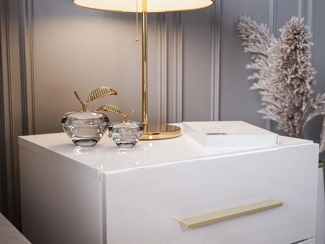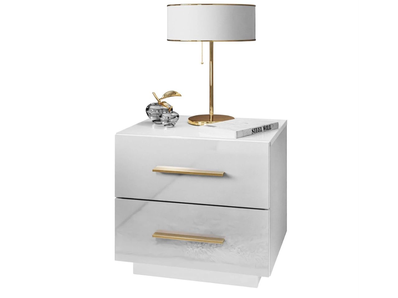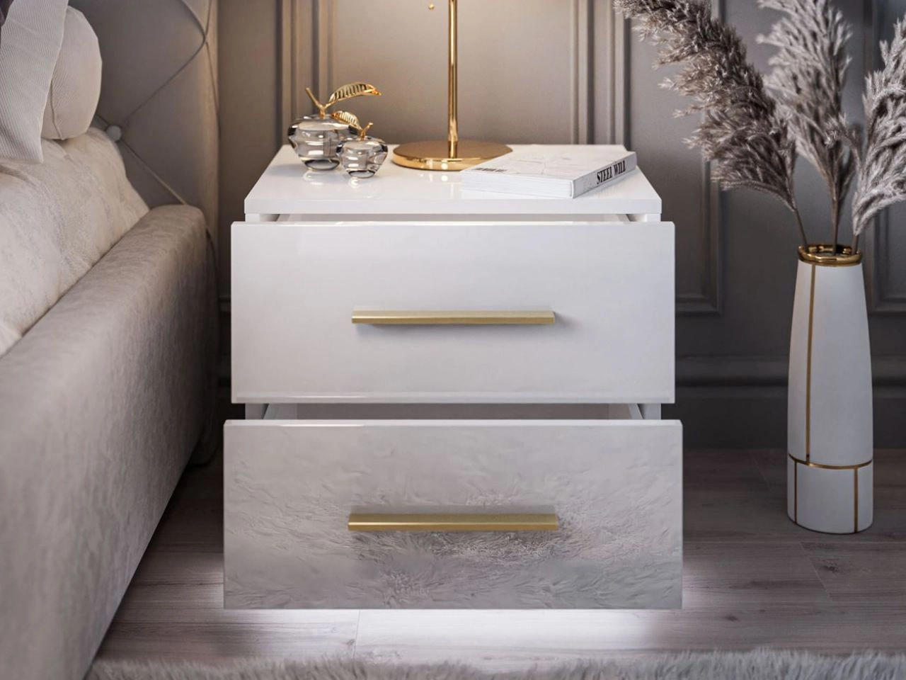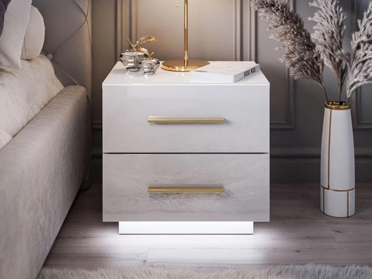 Stolik nocny z dwoma szufladami Nuveo Lux Biały Połysk