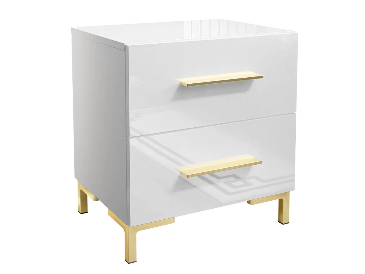 Stolik nocny z dwoma szufladami na złotych nogach Nuveo Lux Biały Połysk