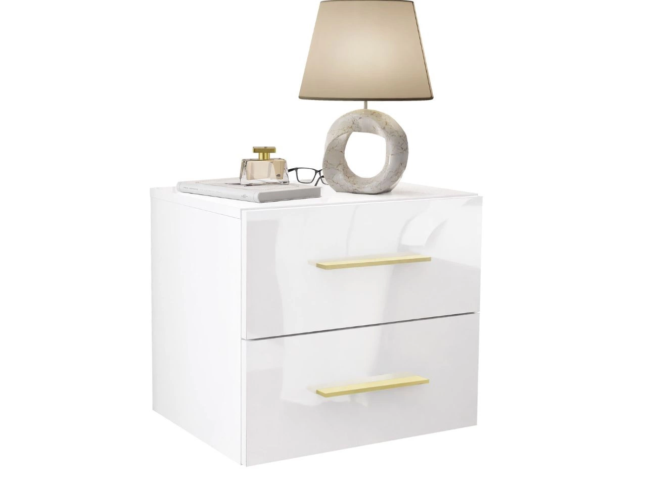 Podwieszany stolik nocny z dwoma szufladami Nuveo Lux Biały połysk