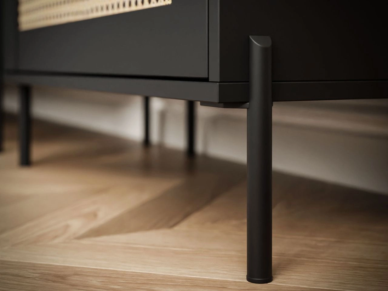 Kolekcja mebli Bellance to idealne rozwiązanie dla osób ceniących sobie ponadczasowe aranżacje. Znajdziemy tu komody, witryny i szafki RTV w dwóch wariantach wybarwienia: w odcieniu drewna oraz w czerni. Obie wersje posiadają na frontach nadrukowany ażurowy wzór imitujący trzcinową plecionkę. Do wyboru w serii Bellance są również nóżki: metalowe proste, lub skośne z tworzywa sztucznego.