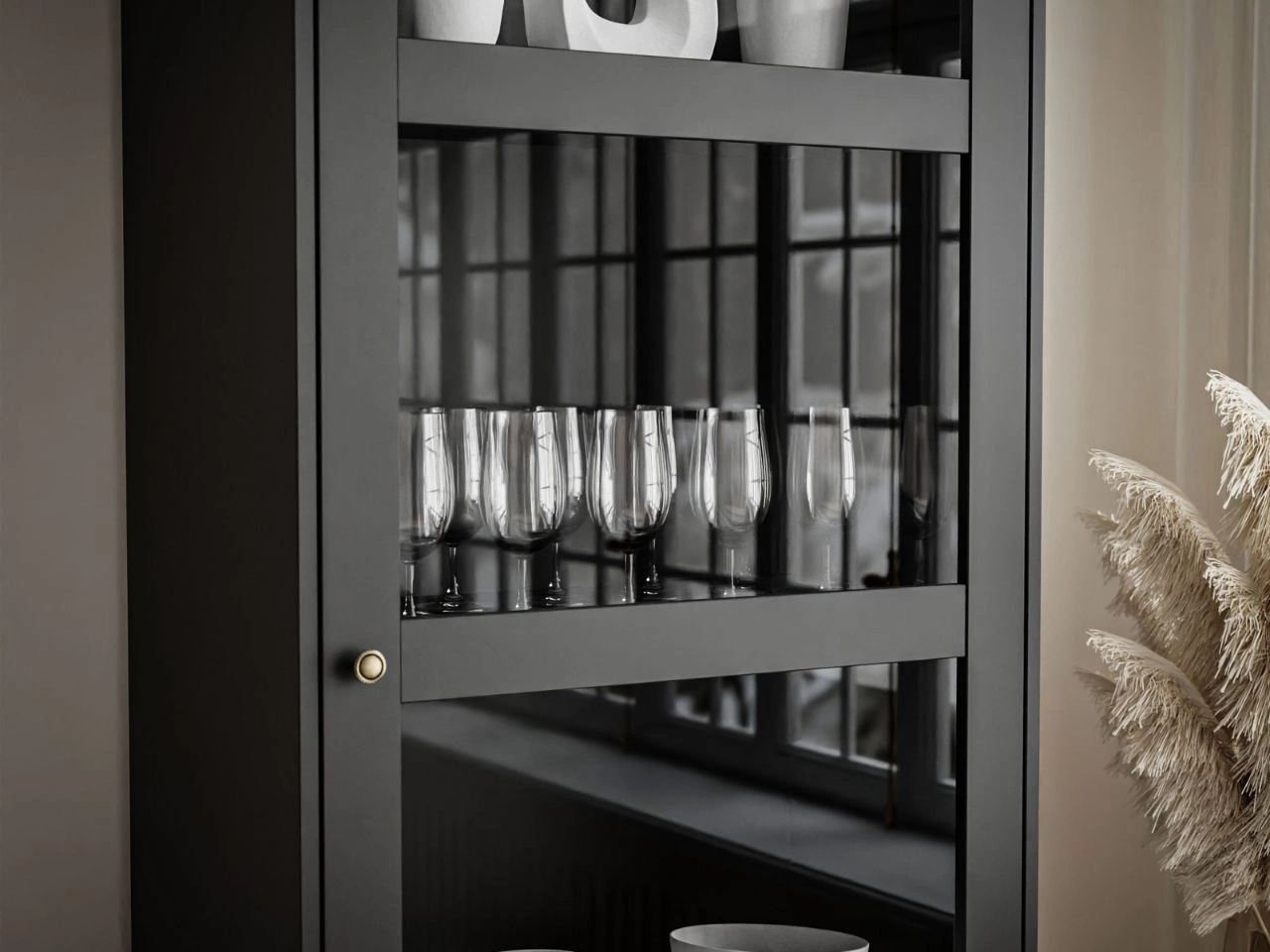 Witryna wąska przeszklona w stylu boho Bellance czarna