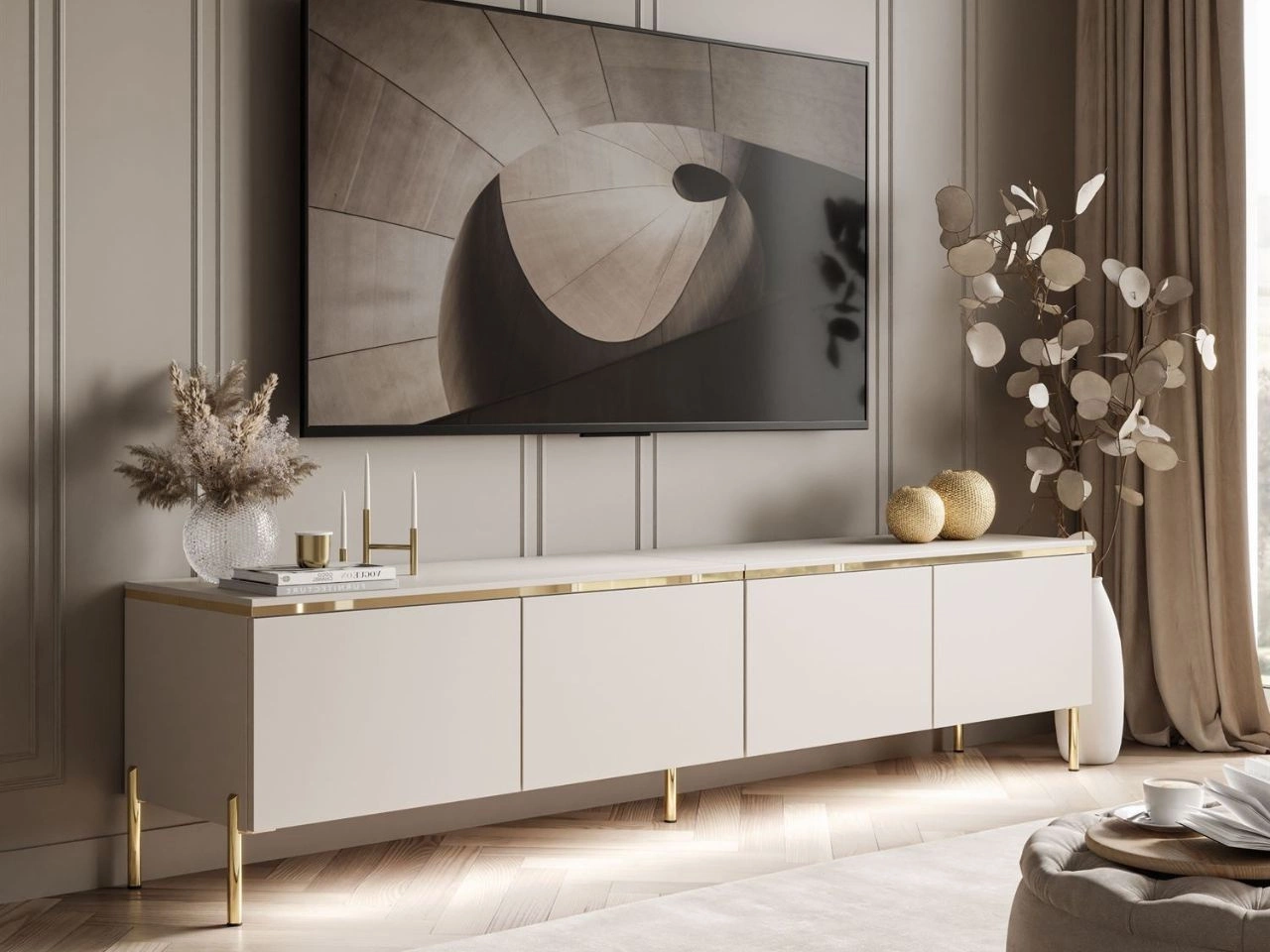 Szafka RTV w stylu glamour z oświetleniem LED Celle kaszmir mat