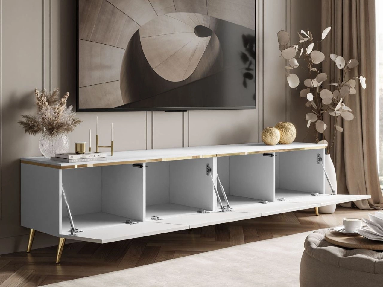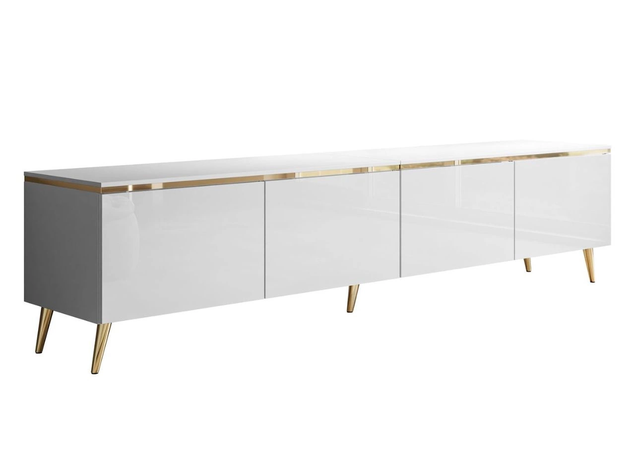Szafka RTV czterodrzwiowa w stylu glamour z oświetleniem LED Celle biały połysk