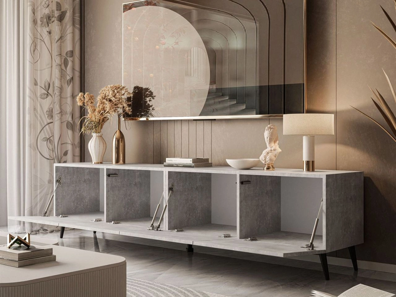 Szafka RTV pod telewizor z drzwiczkami na czarnych nóżkach 200 cm Nodoo Beton