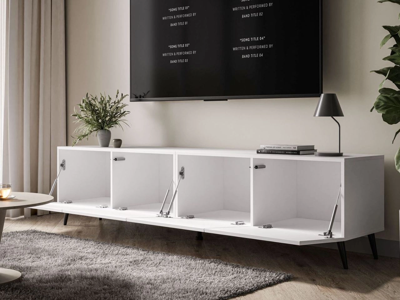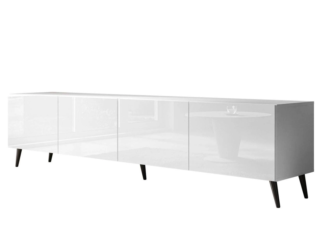 Szafka RTV pod telewizor z drzwiczkami na czarnych nóżkach 200 cm Nodoo Biały połysk