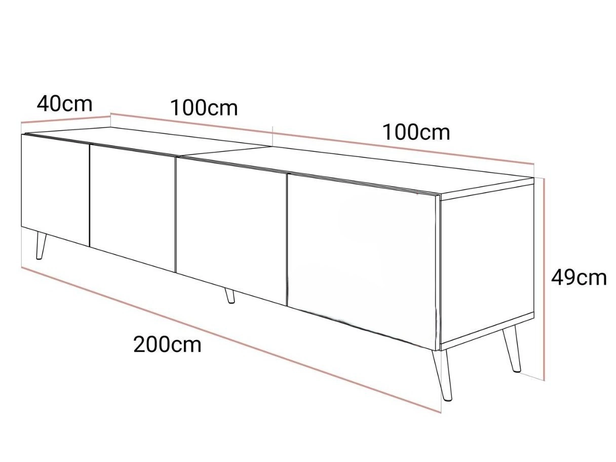 - Szafka RTV składa się z dwóch elementów o szerokości 100 cm każdy, które po zestawieniu tworzą łączną szerokość 200 cm