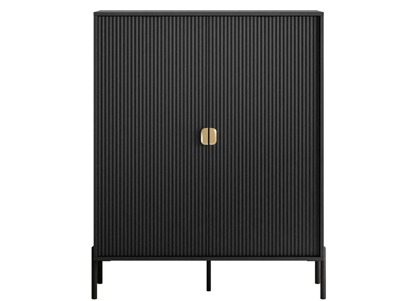 Wysoka komoda dwudrzwiowa ze złotymi uchwytami Orlean czarny mat
