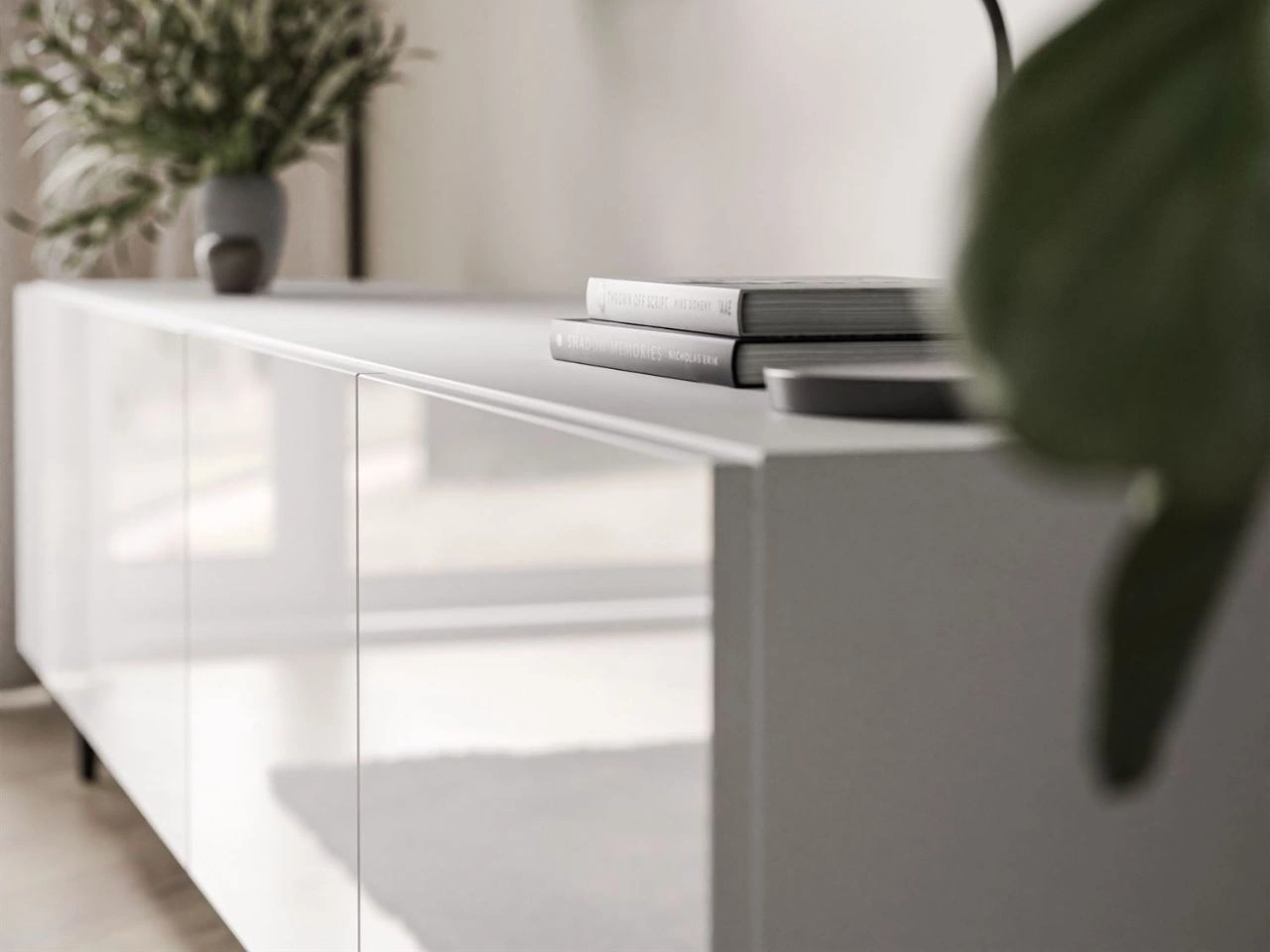 Szukasz nowoczesnej szafki RTV, która wprowadzi do wnętrza elegancję i funkcjonalność? Model Nodoo w wykończeniu białego połysku to idealne rozwiązanie dla osób ceniących prostotę, praktyczne detale i designerski wygląd. Minimalistyczna forma i gładkie fronty sprawiają, że mebel świetnie wpasuje się w aranżacje industrialne, nowoczesne czy glamour.