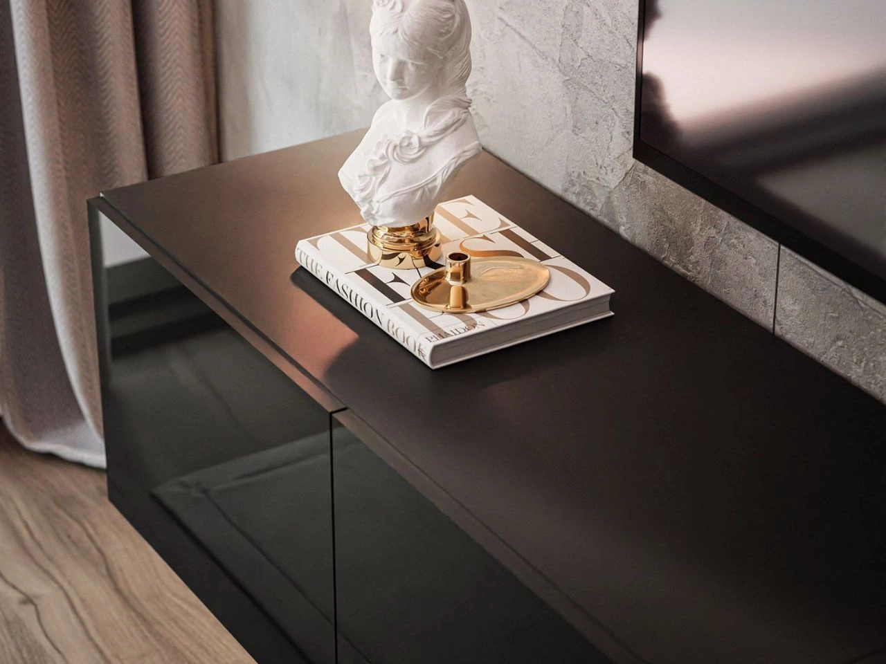 Szukasz nowoczesnej szafki RTV, która wprowadzi do wnętrza elegancję i funkcjonalność? Model Nodoo w wykończeniu czarnego połysku to idealne rozwiązanie dla osób ceniących prostotę, praktyczne detale i designerski wygląd. Minimalistyczna forma i gładkie fronty sprawiają, że mebel świetnie wpasuje się w aranżacje industrialne, nowoczesne czy glamour.
