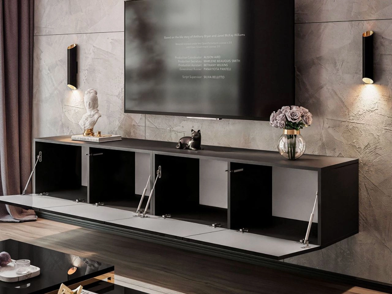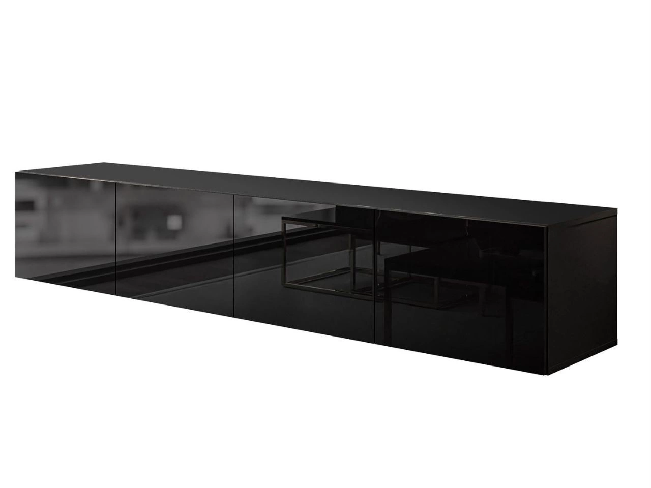 Wisząca szafka RTV pod telewizor z drzwiczkami 200 cm Nodoo Czarny połysk