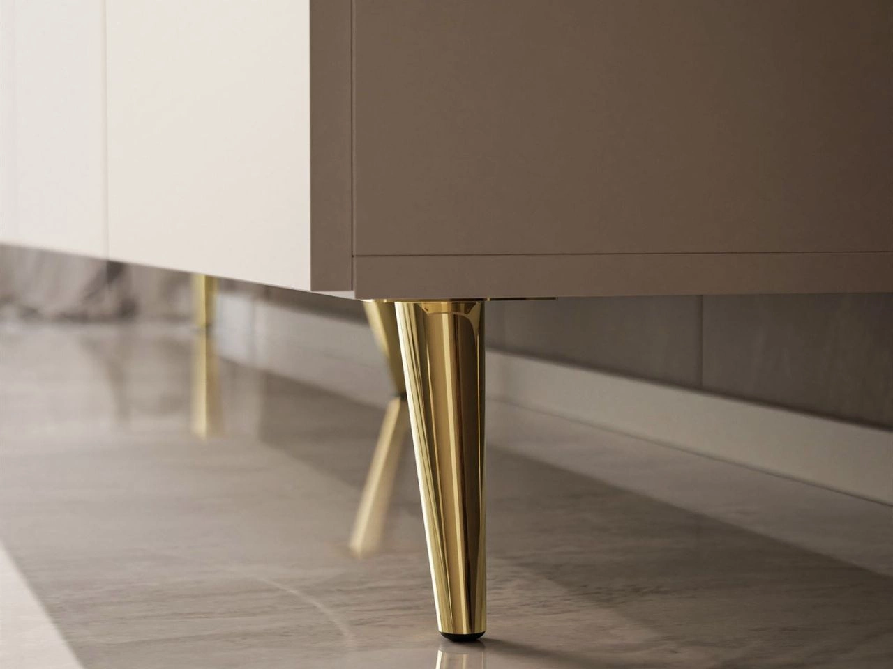 Szafka RTV pod telewizor z drzwiczkami na złotych nóżkach 100 cm Nodoo Kaszmir
