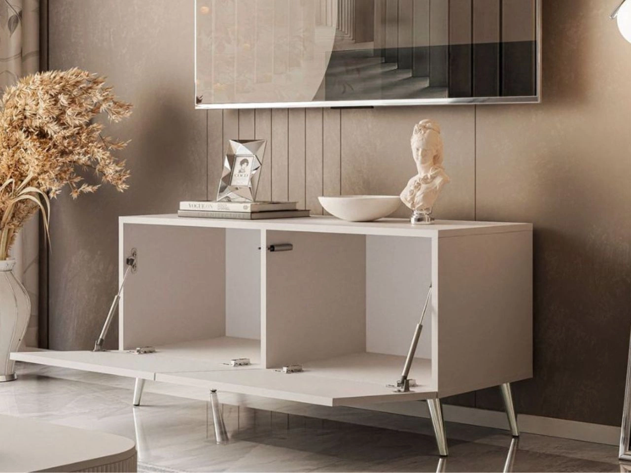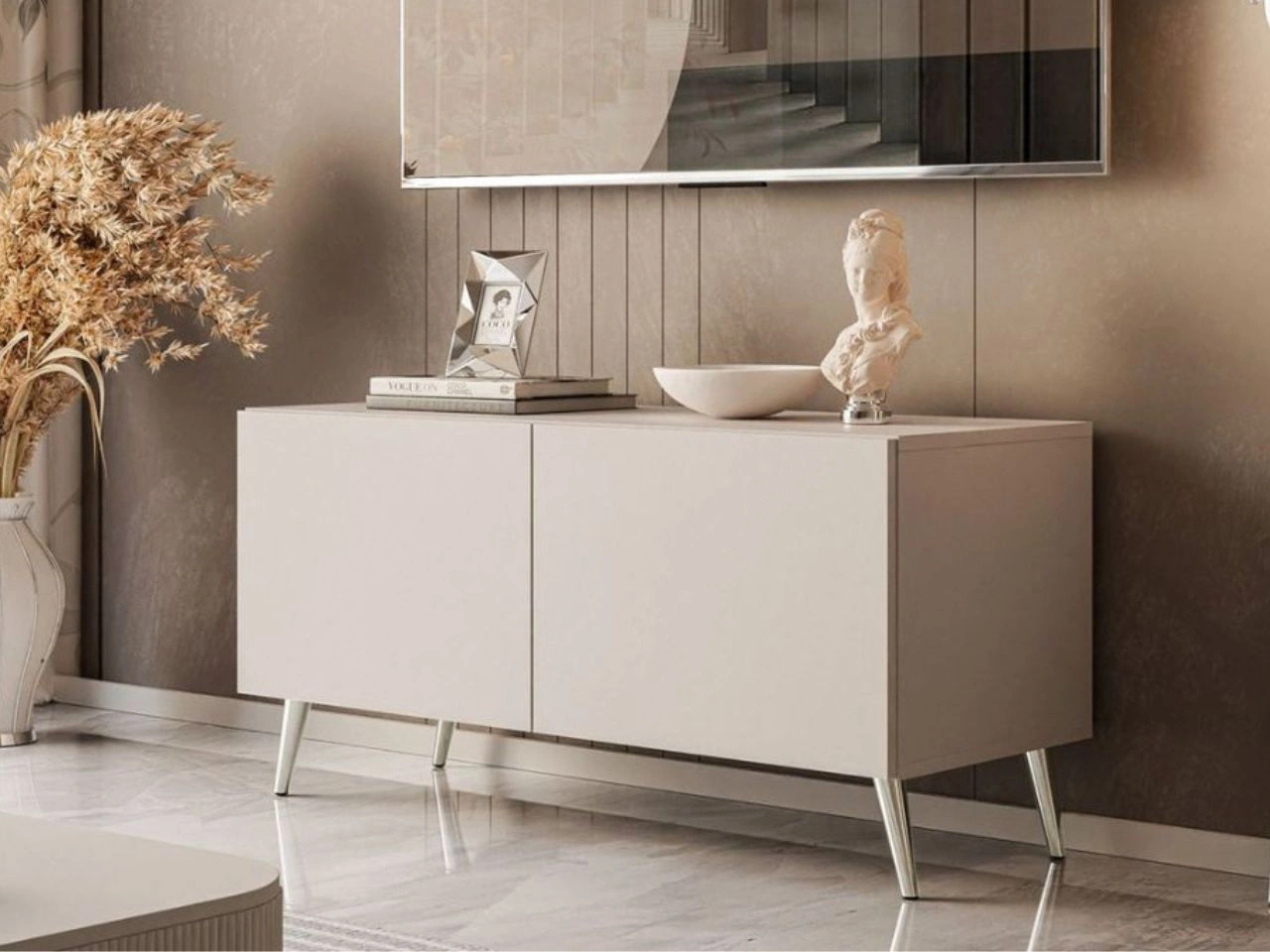 Szafka RTV pod telewizor z drzwiczkami na srebrnych nóżkach 100 cm Nodoo Kaszmir