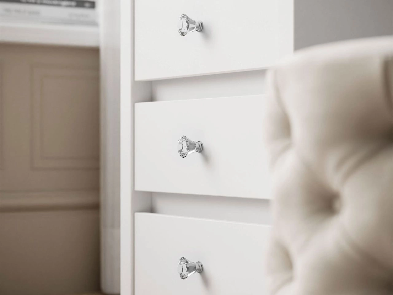 Toaletka z szufladami, kryształowymi uchwytami i oświetleniem LED Nesso biały mat