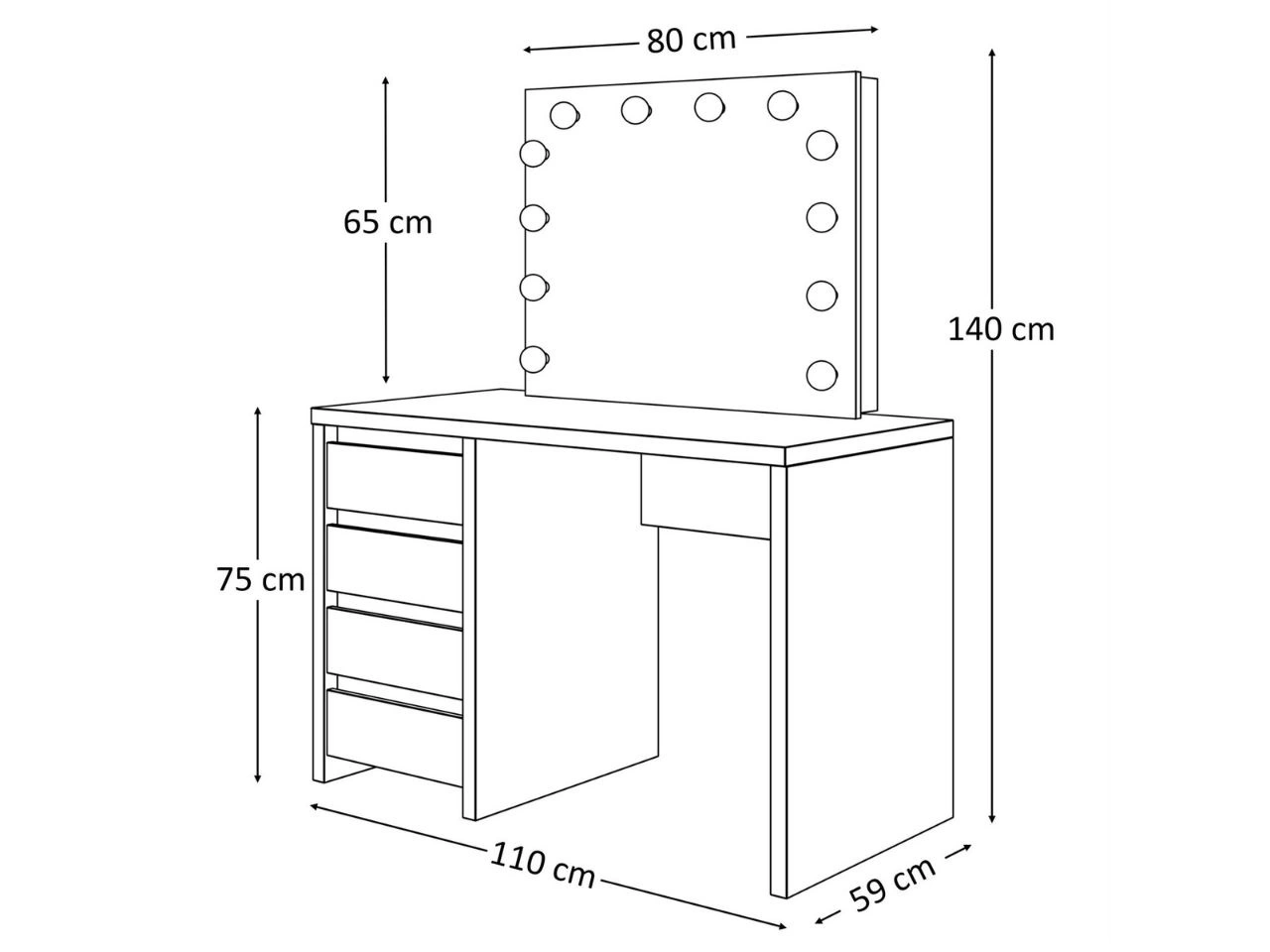 - Wysokość: 140 cm (konsola 75 cm, lustro 65 cm)