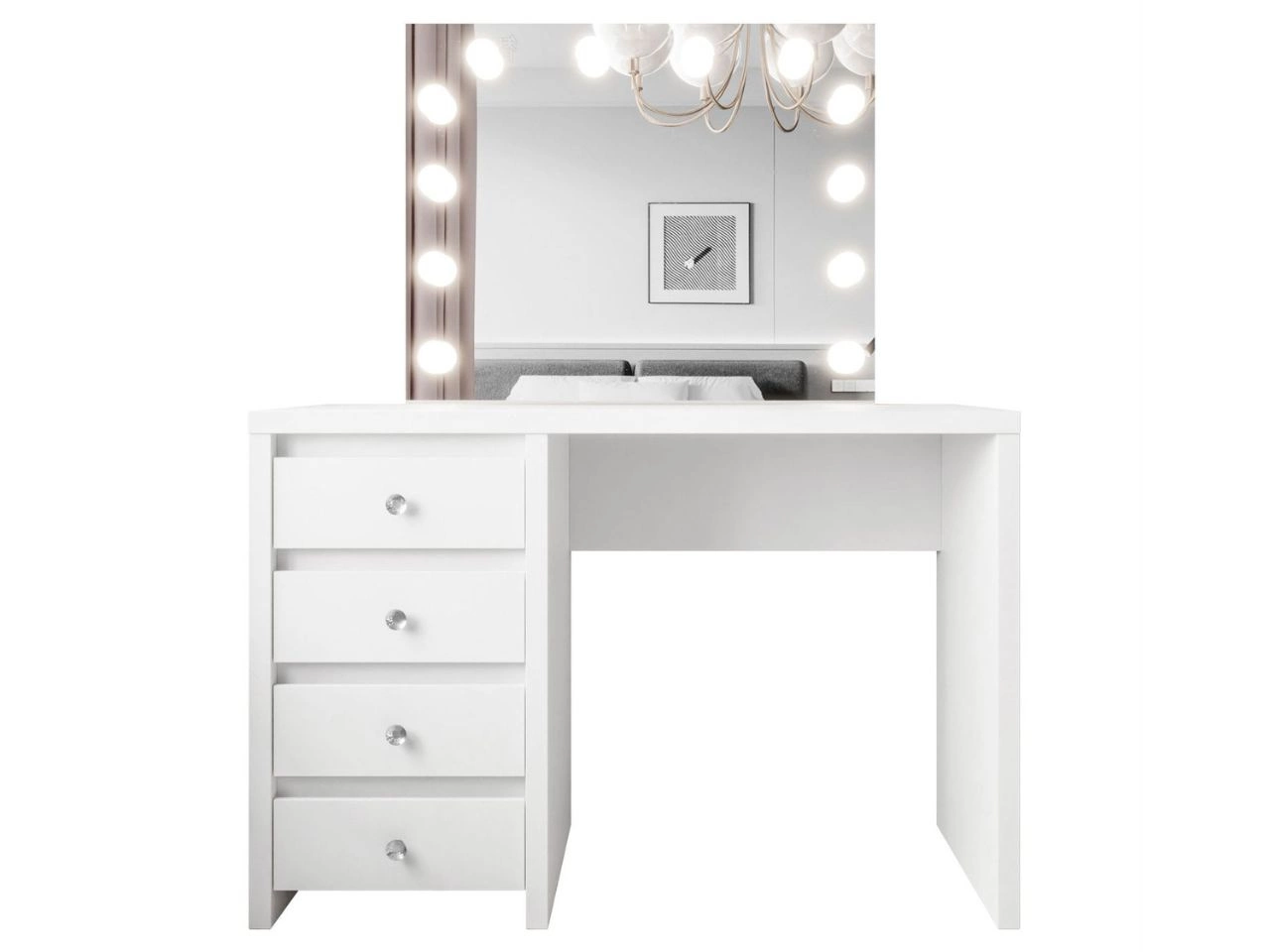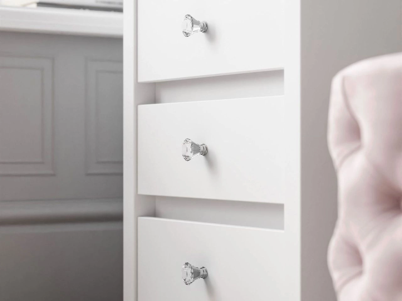 Toaletka z szufladami z kryształowymi uchwytami i oświetleniem LED Nesso biały mat